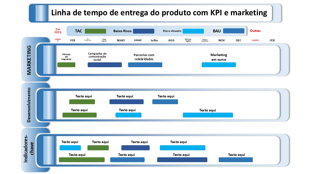 Cronograma de entrega do produto com Kpi e modelo de PowerPoint de marketing para apresentações profissionais