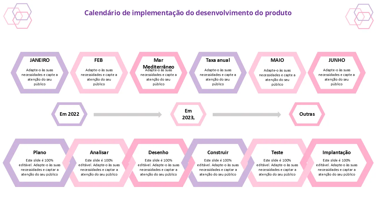 Modelo de PowerPoint gráfico de cronograma de implementação de desenvolvimento de produto para apresentações profissionais