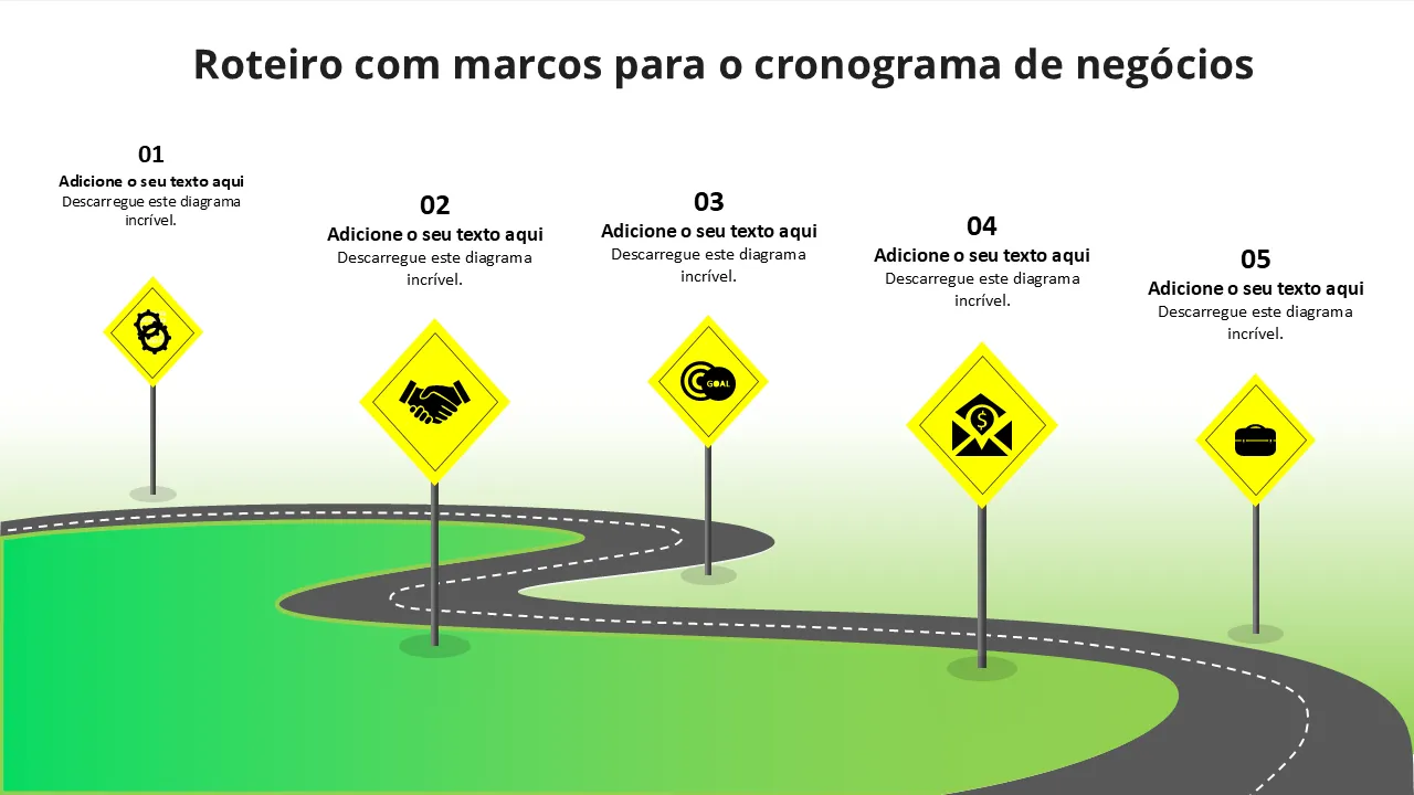 Roteiro com marcos para cronograma de negócios Modelo de PowerPoint de design plano de PowerPoint para apresentações profissionais