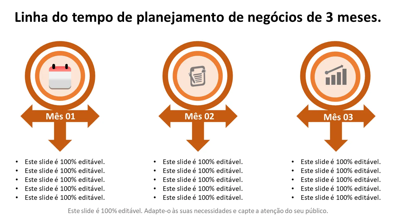 Um cronograma de planejamento de negócios de meses projetado profissionalmente para apresentações de planos de negócios. Slides editáveis com design moderno, ideais para profissionais de negócios, consultores e equipes. Layout limpo pronto para personalizar.