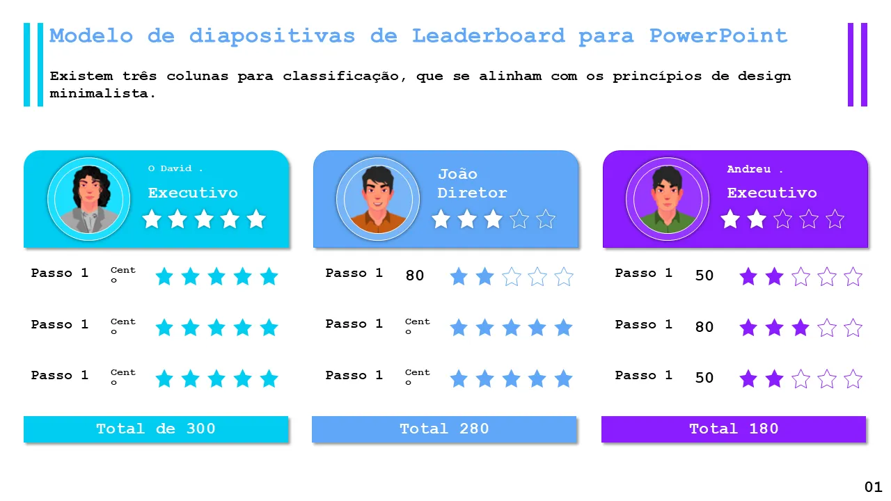 Um modelo de slide de placar projetado profissionalmente para Powerpoint para apresentações de prêmios e reconhecimentos. Slides editáveis com design moderno, ideais para profissionais de negócios, consultores e equipes. Layout limpo pronto para personalizar.