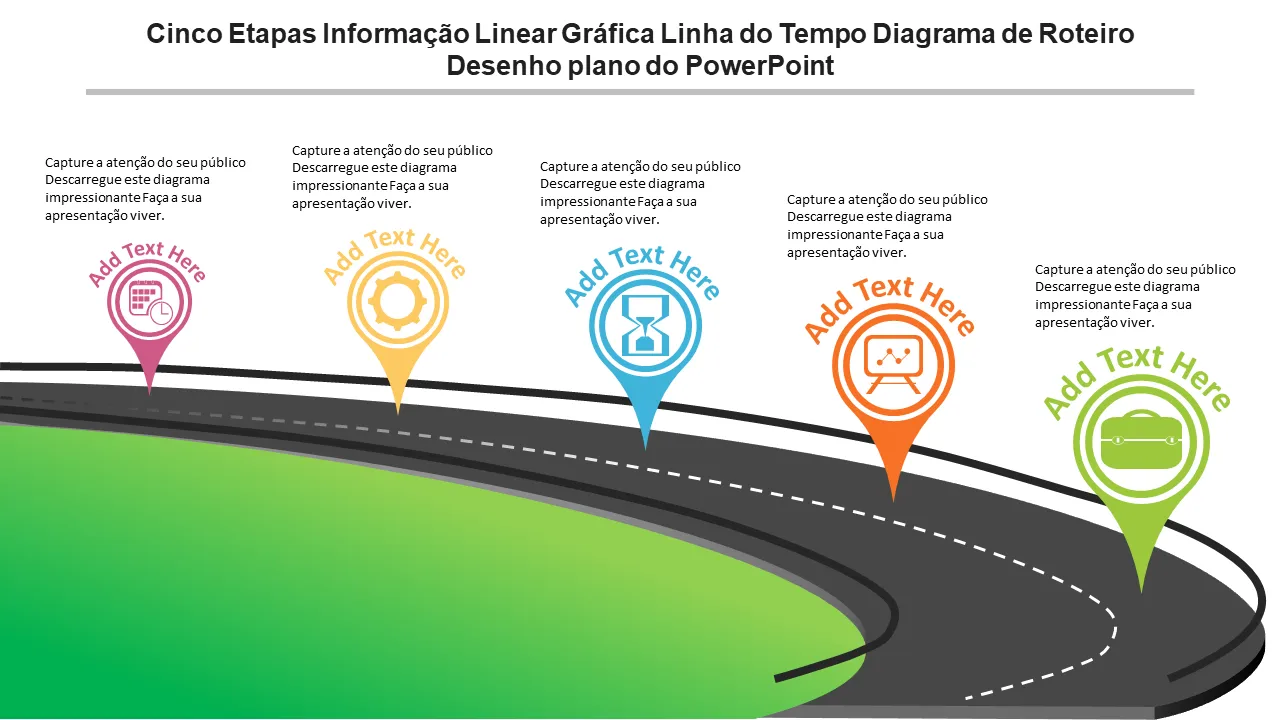 Cinco informações lineares encenadas, cronograma gráfico, diagrama de roteiro, design plano de Powerpoint
