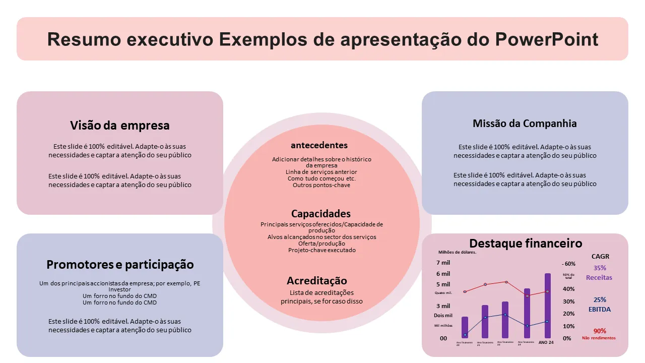 Exemplos de apresentação em PowerPoint de resumo executivo