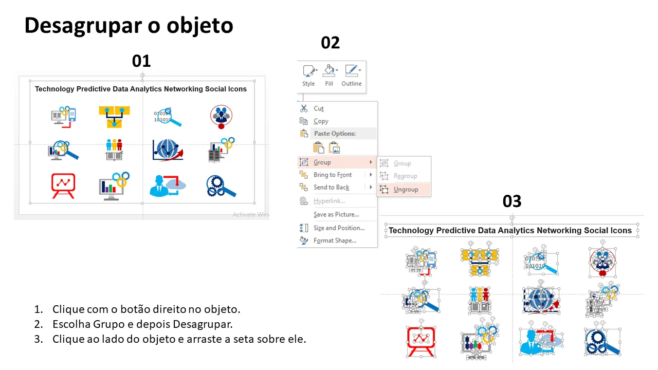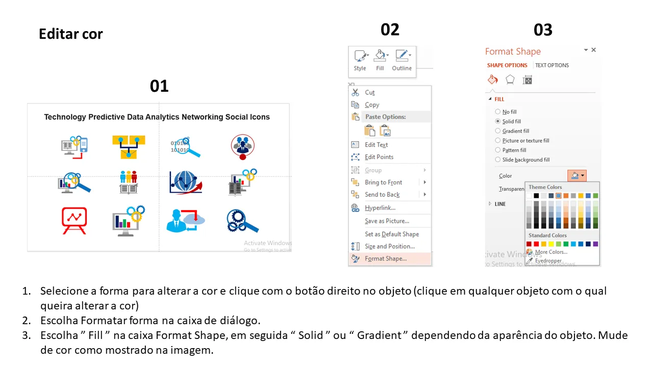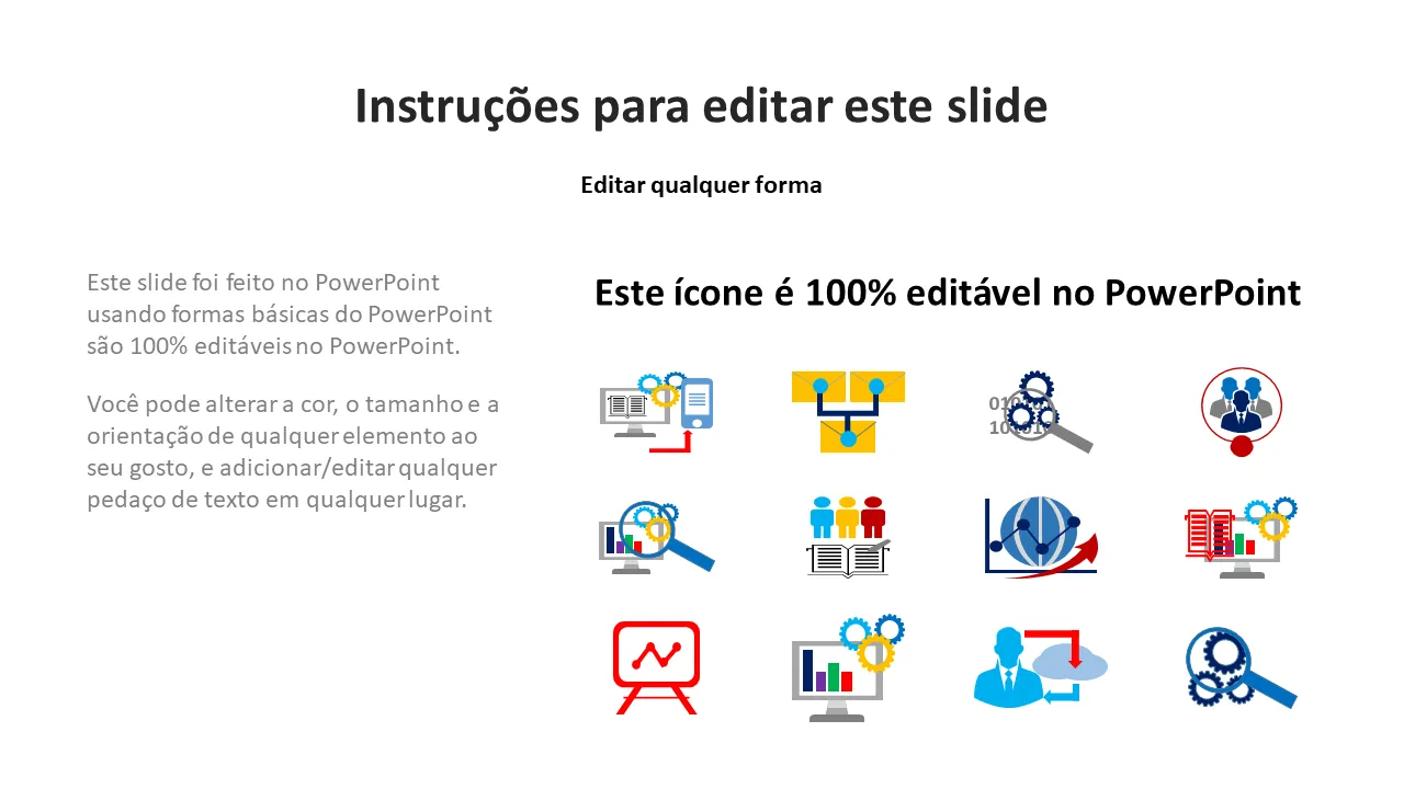 - Ícones escaláveis para pequenos infográficos e slides de apresentação grandes