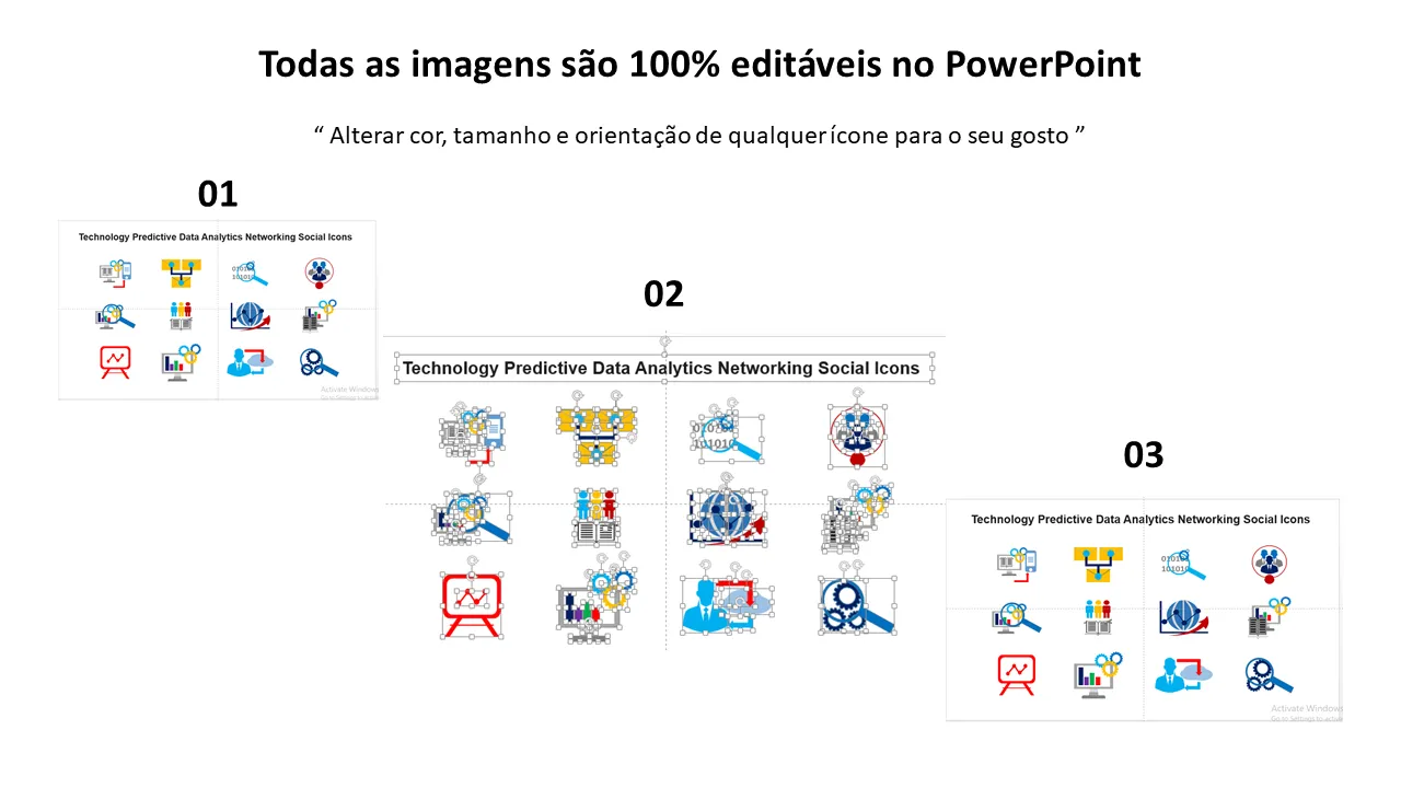 0115 Tecnologia Preditiva Análise de Dados Rede Ícones Sociais Powerpoint Slide