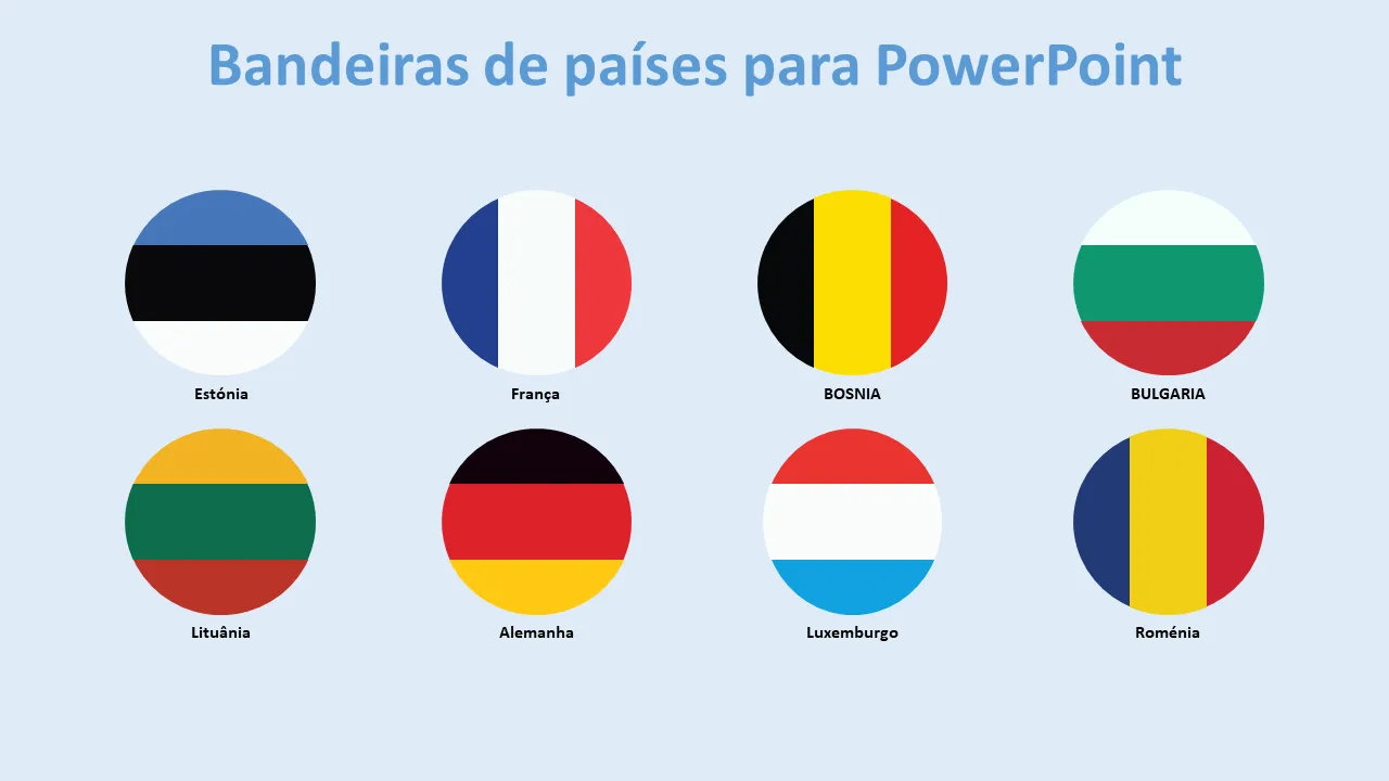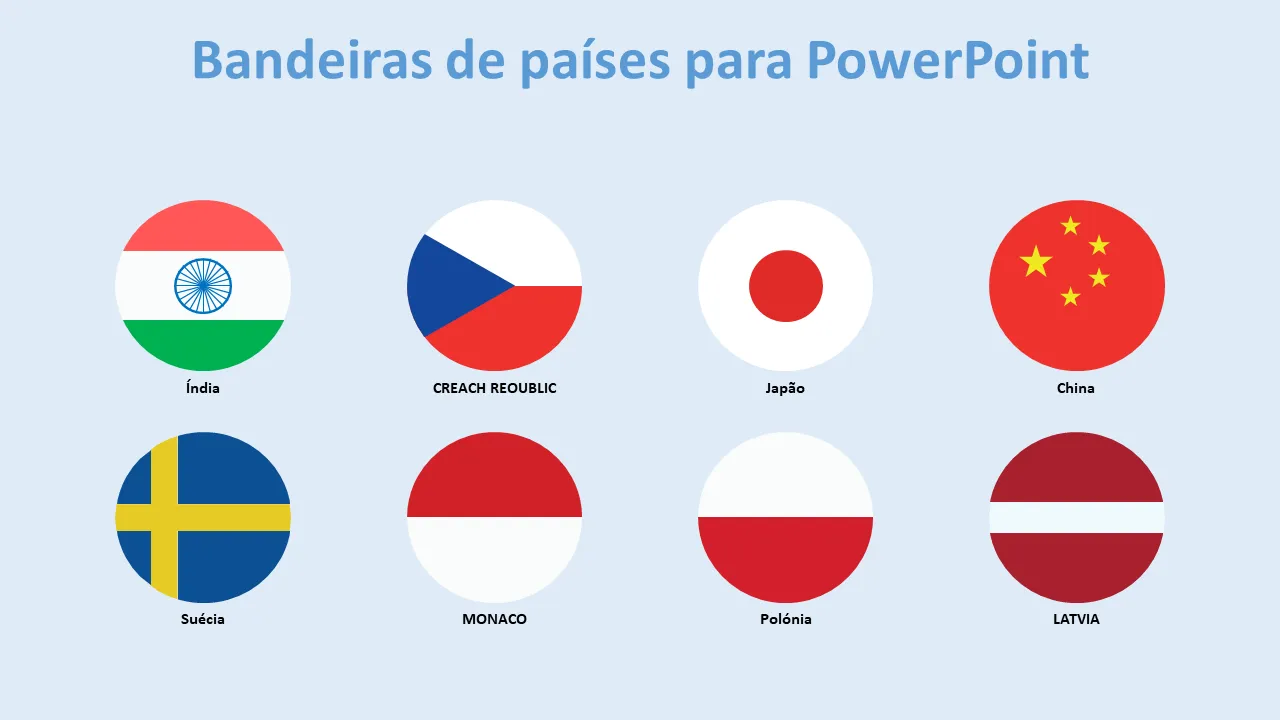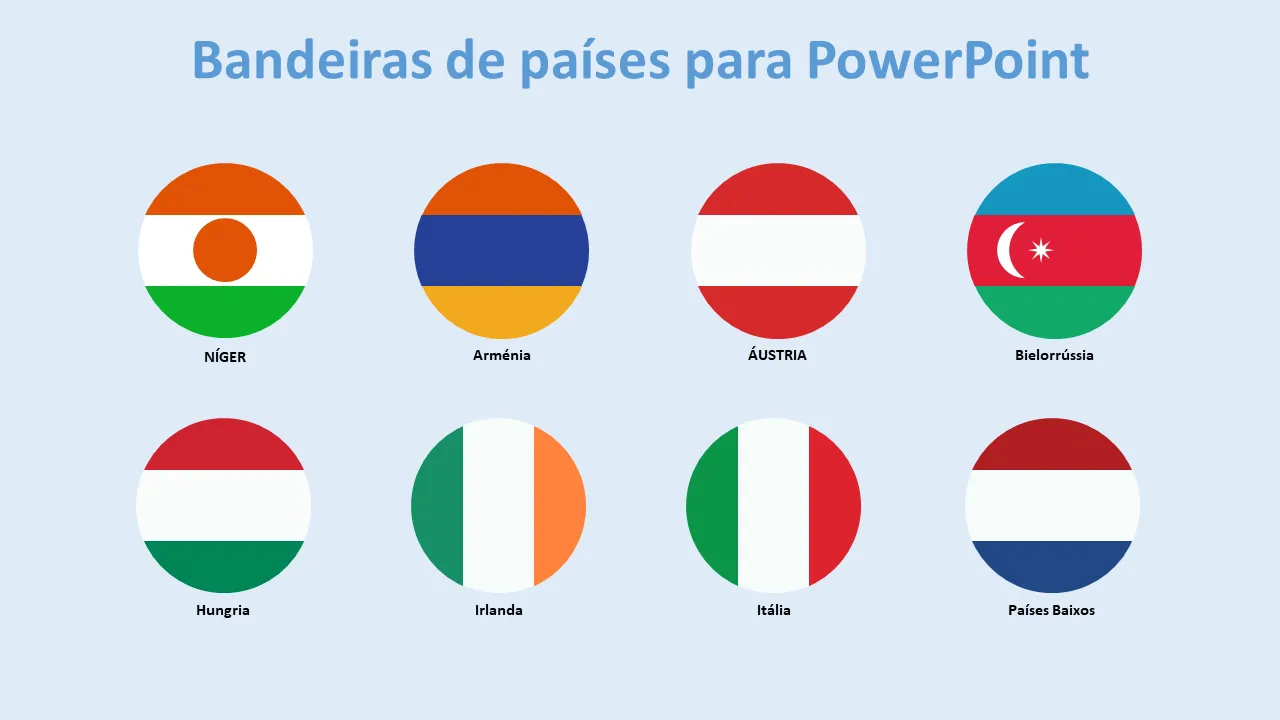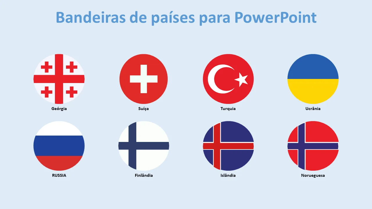 - Gráficos de bandeiras de países de alta resolução otimizados para compatibilidade com PowerPoint