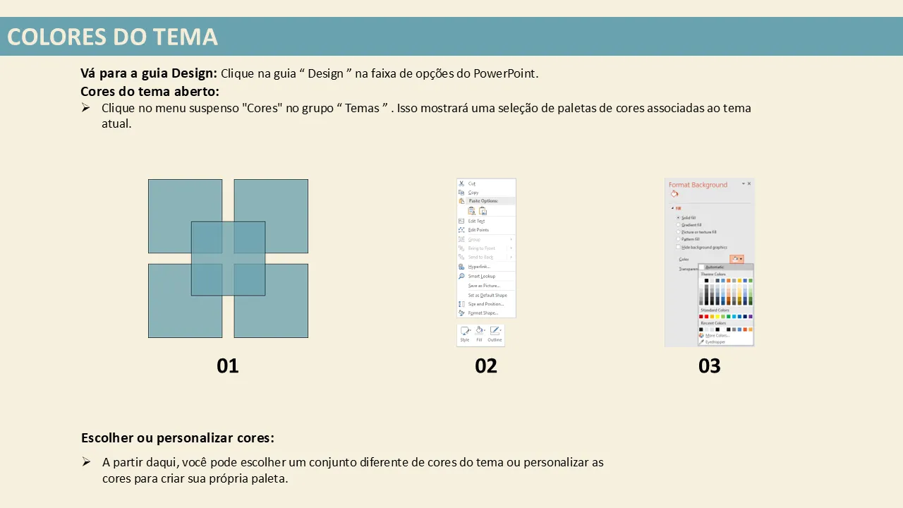 - Elementos visuais e marcadores de conteúdo específicos de cada tópico