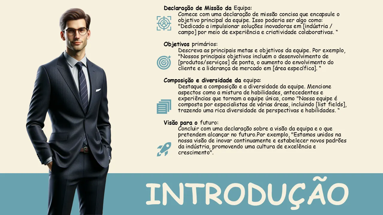 Explicação dos slides do modelo do Powerpoint Conheça a equipe