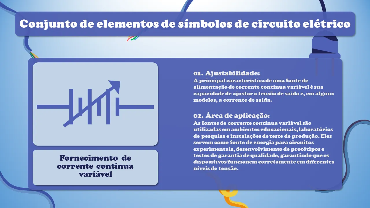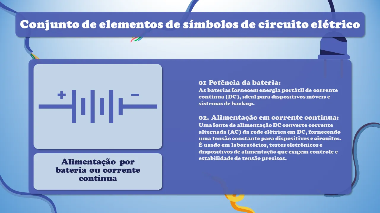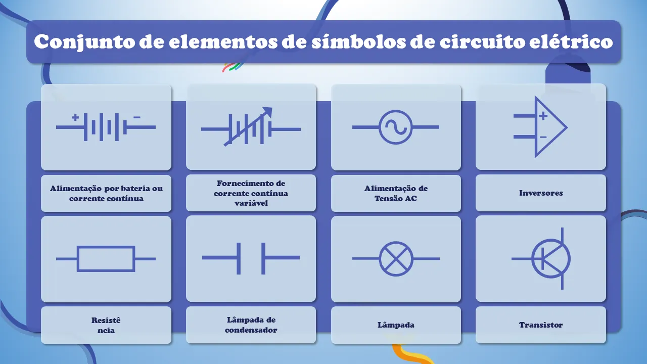 Conjunto de elementos de símbolos de circuito elétrico para explicação em Powerpoint