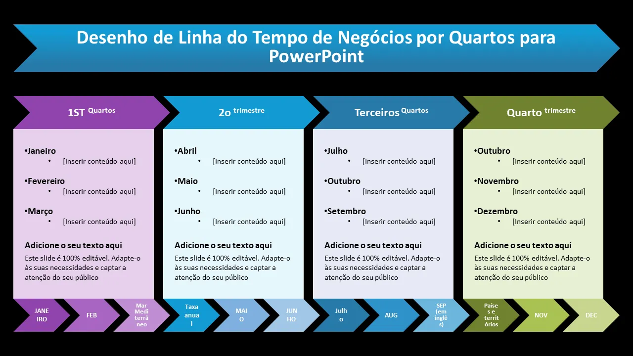 Design de cronograma de negócios por trimestres para PowerPoint