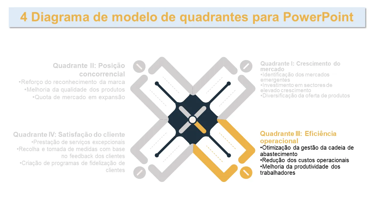 Características de Diagrama de modelo de 4 quadrantes para modelo de slide do PowerPoint