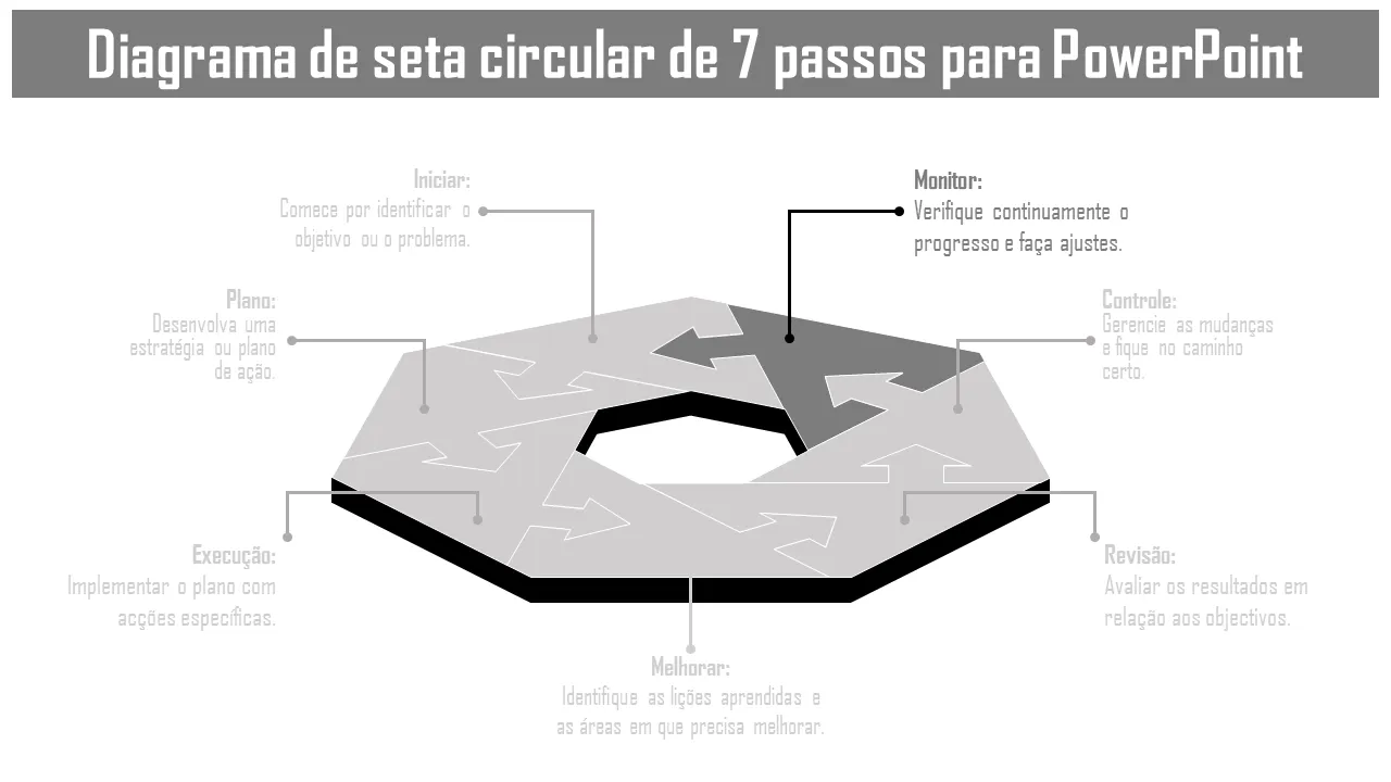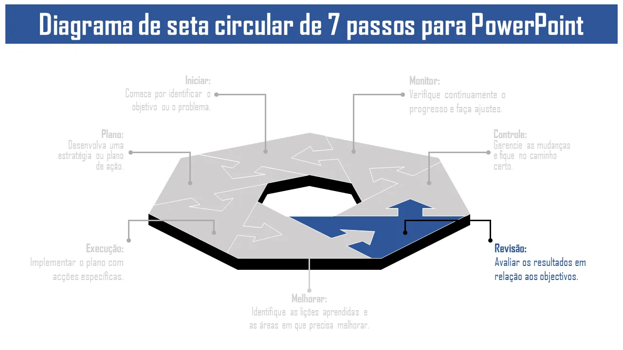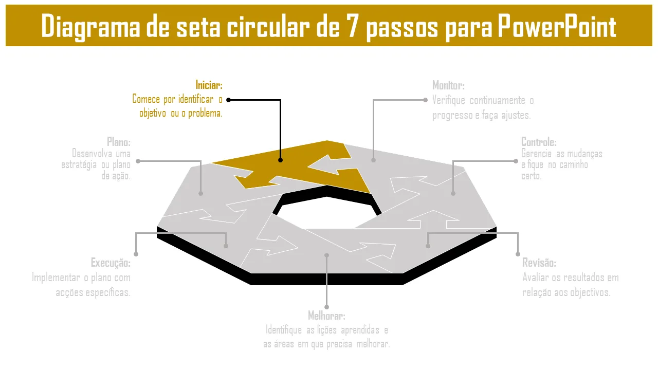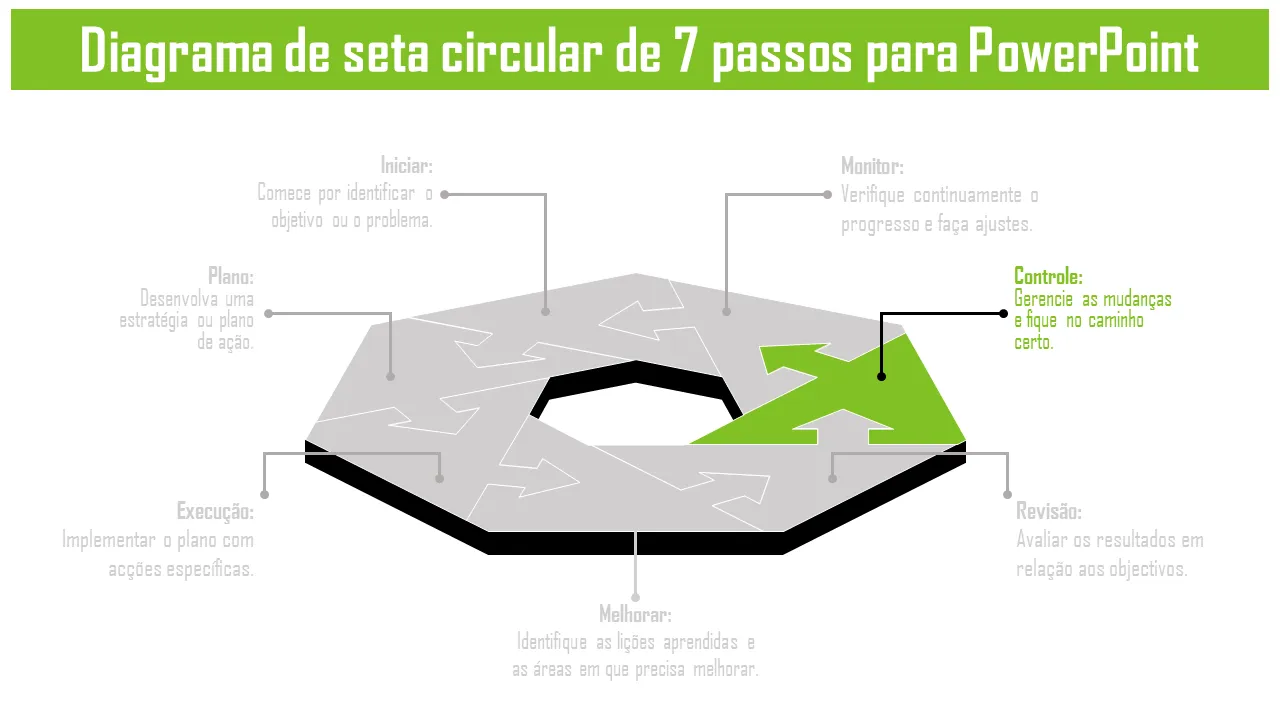 Explicação do modelo de PowerPoint de diagrama de seta circular de 7 etapas
