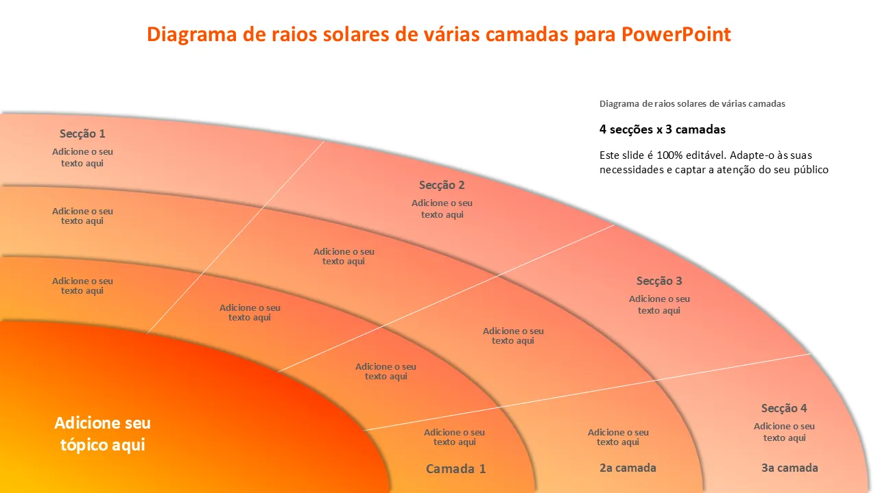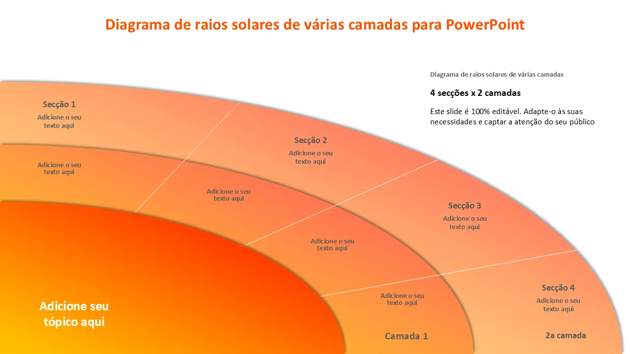 Diagrama Sun Ray multicamadas para explicação em PowerPoint