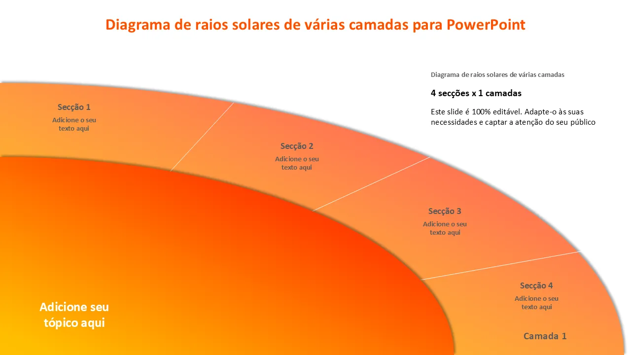 Características de Diagrama Sun Ray multicamadas para PowerPoint Modelo de PowerPoint para apresentações profissionais