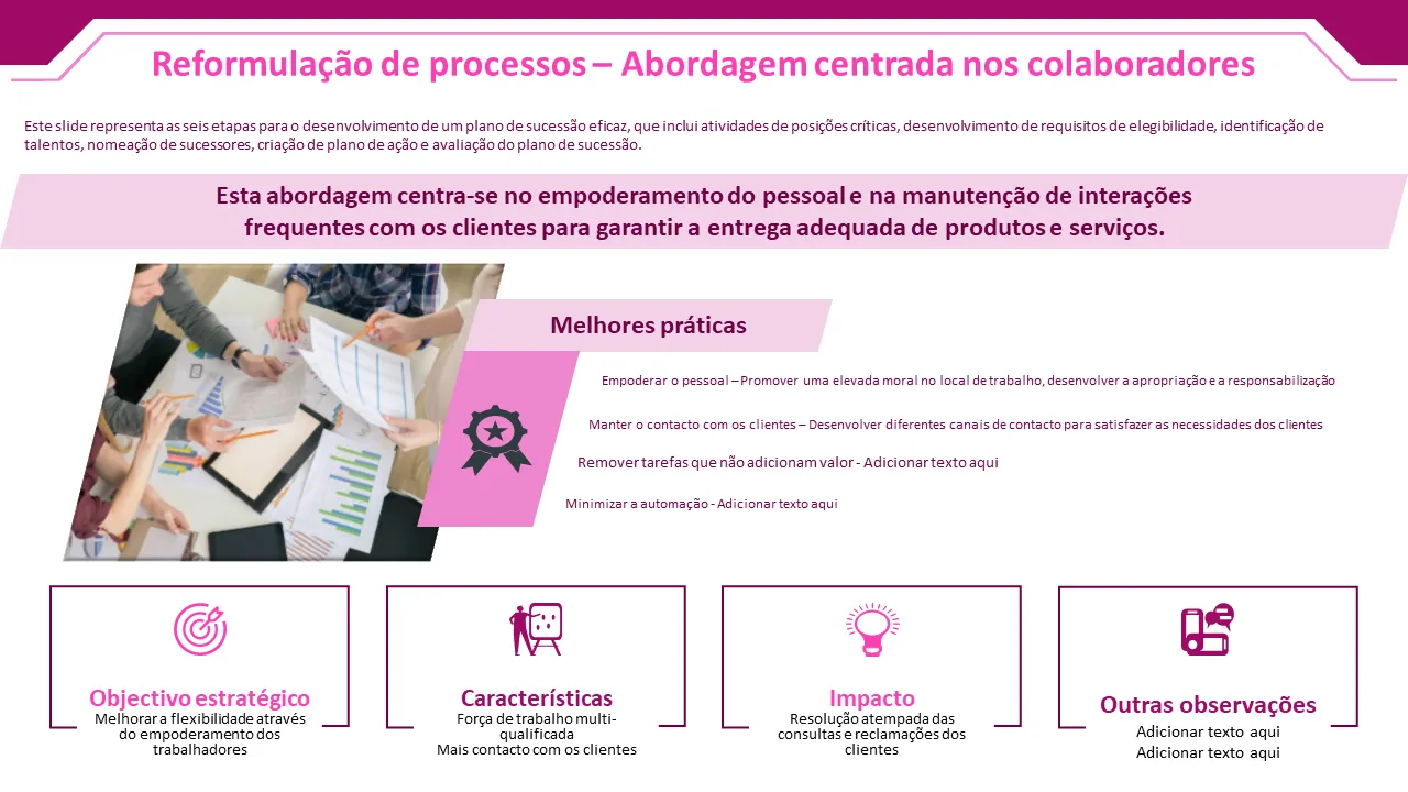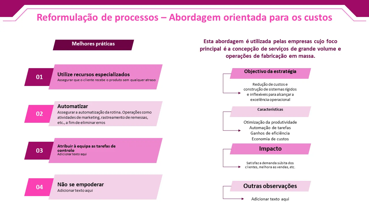 Modelo de PowerPoint de estratégias de redesenho de processos de negócios para excelência operacional