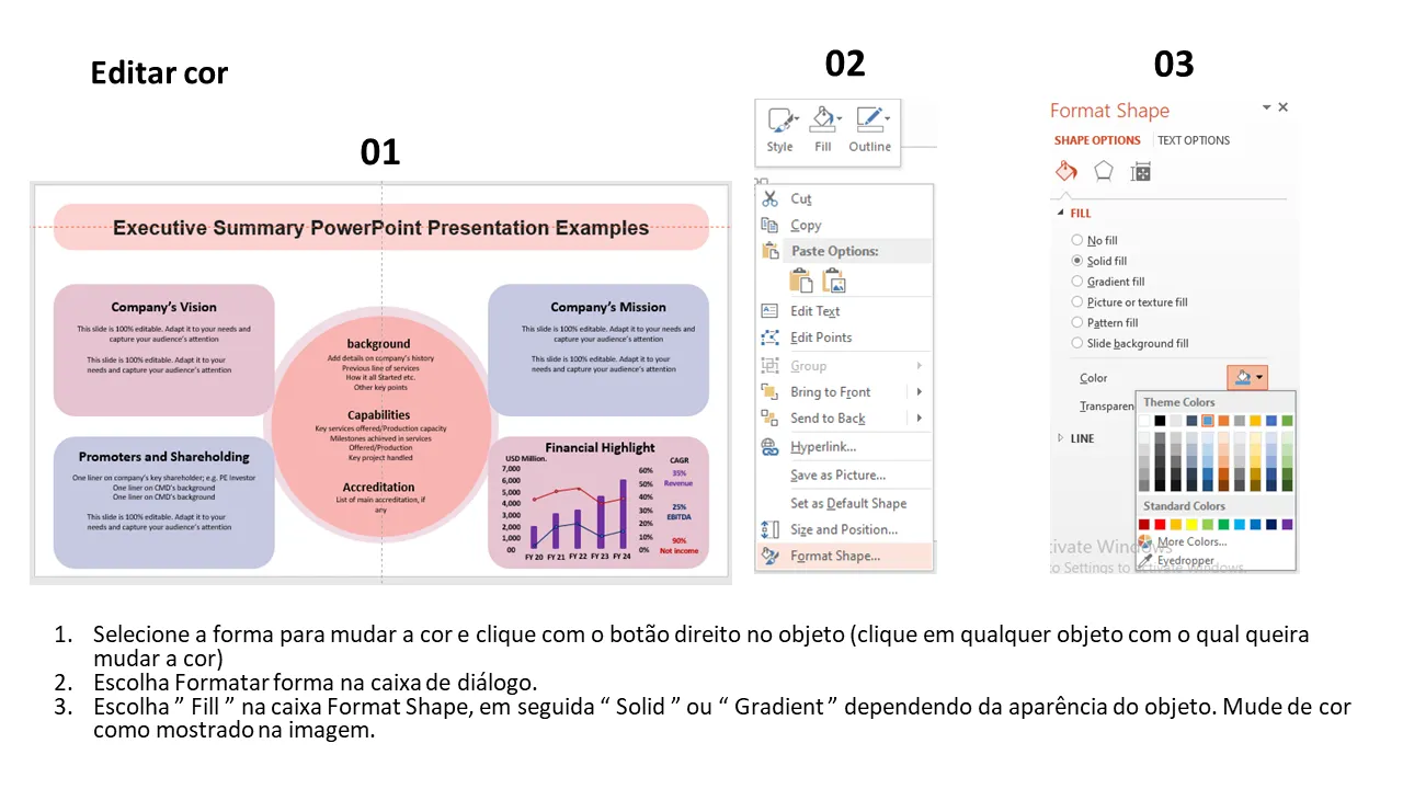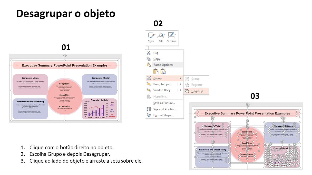 Explicação de exemplos de apresentação em PowerPoint de resumo executivo