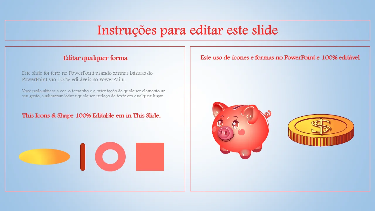 Modelo de clipart de cofrinho e moeda para apresentações de negócios