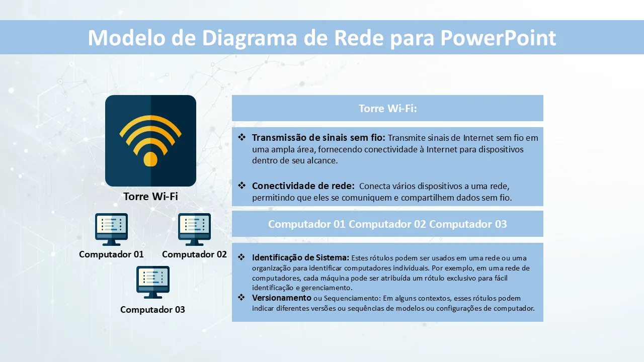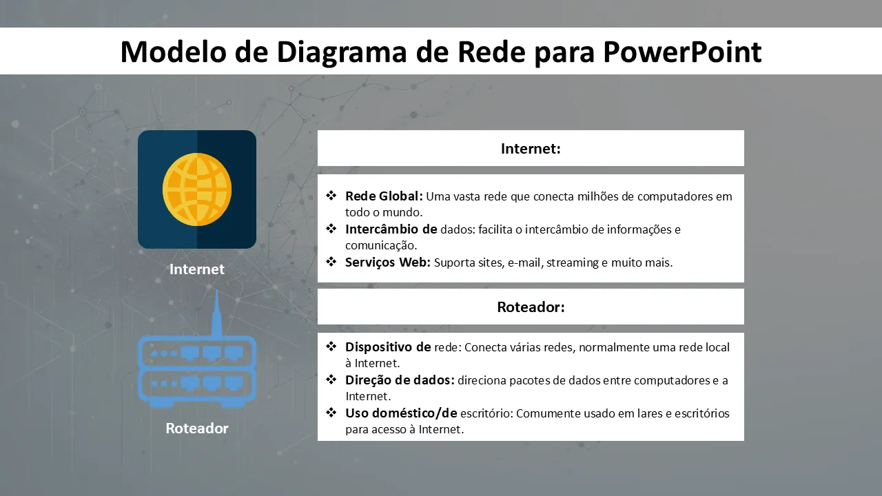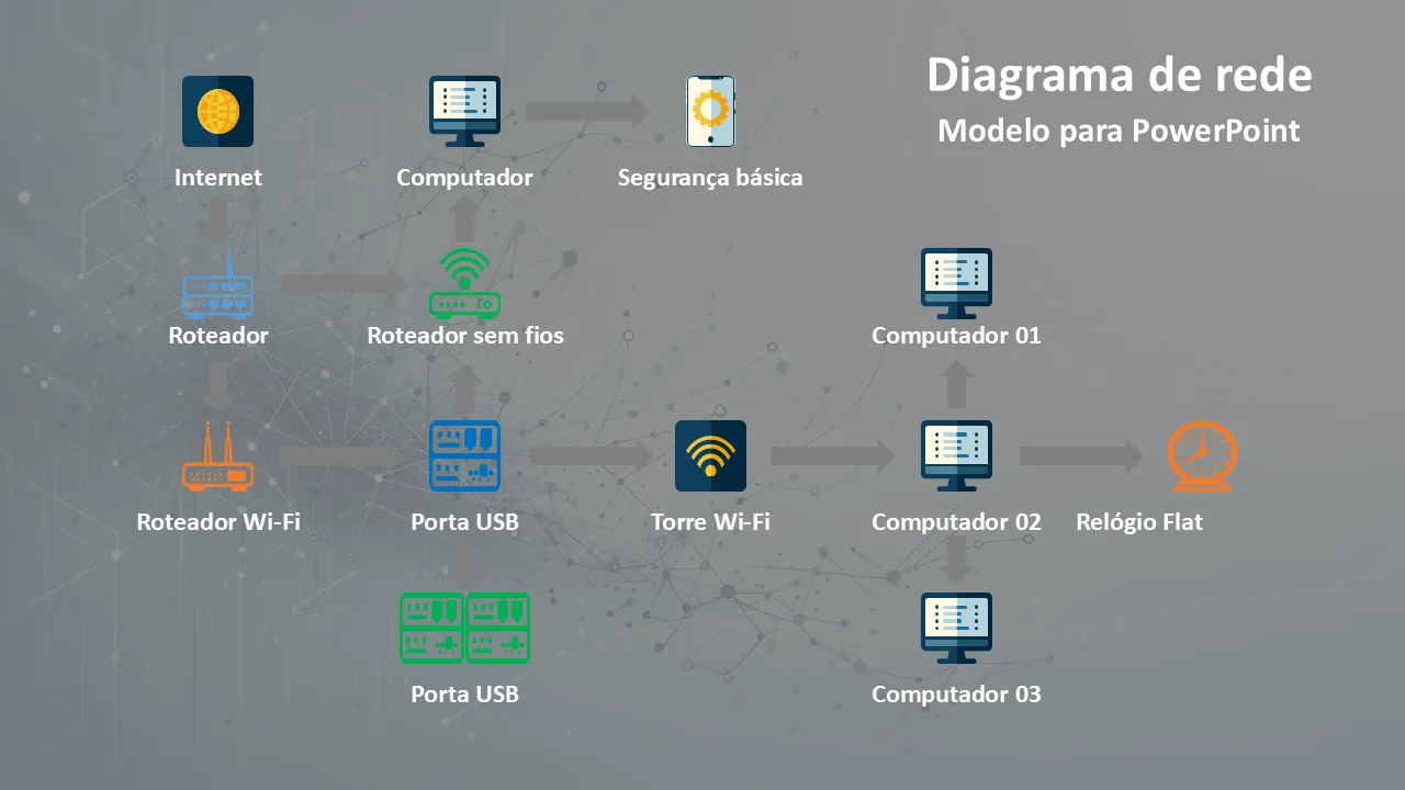 Modelo de diagrama de rede para explicação em PowerPoint