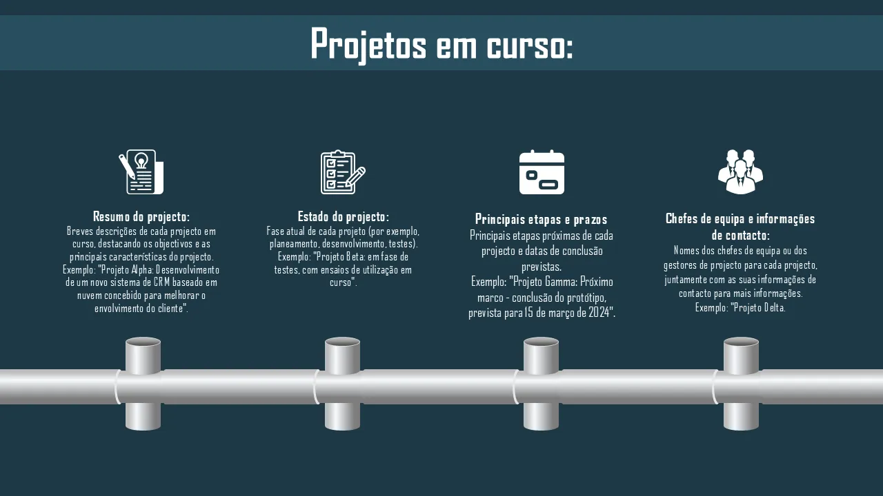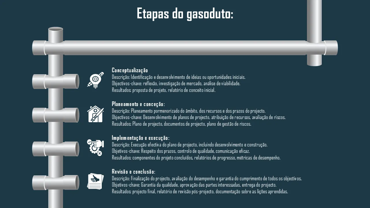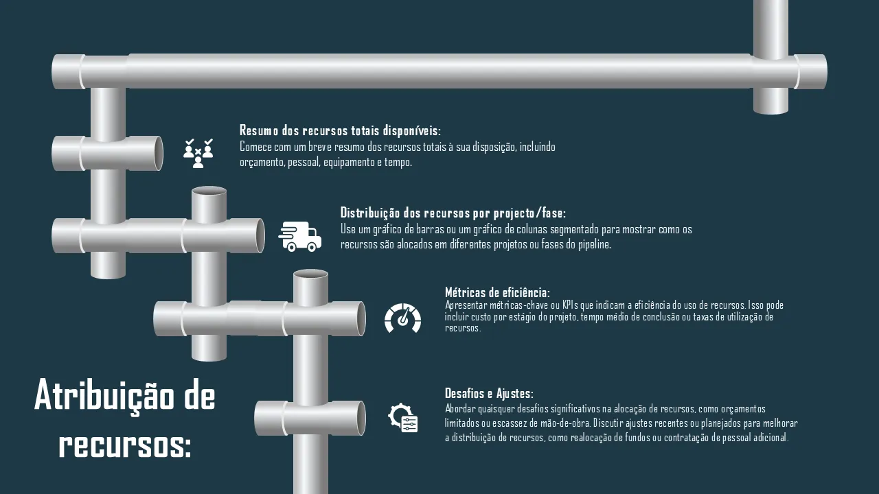 Explicação dos slides de apresentação do modelo de pipeline do PowerPoint