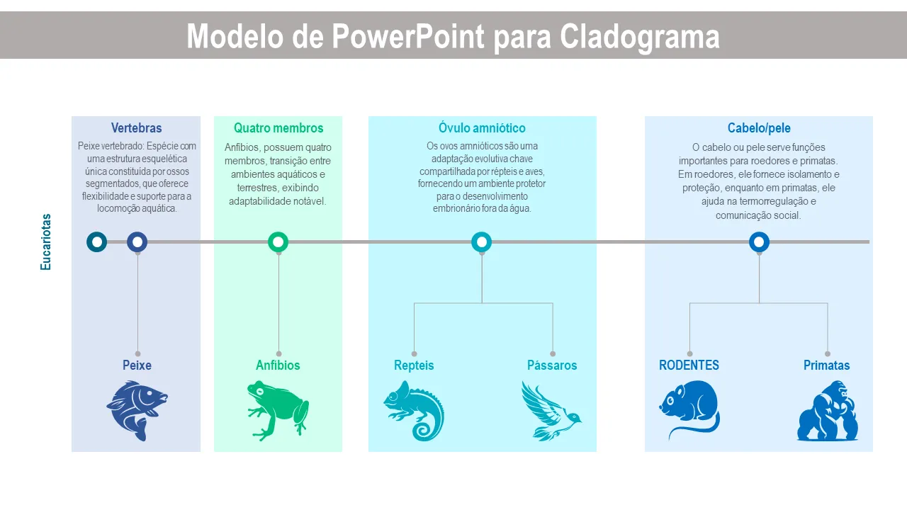 Explicação do modelo de PowerPoint de diagrama de cladograma