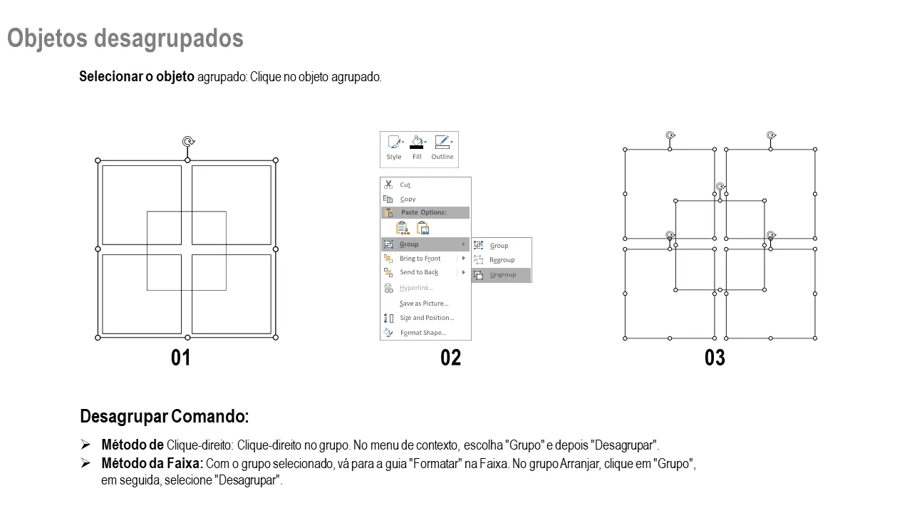 - Inclui instruções de agrupamento e desagrupamento para facilitar a edição