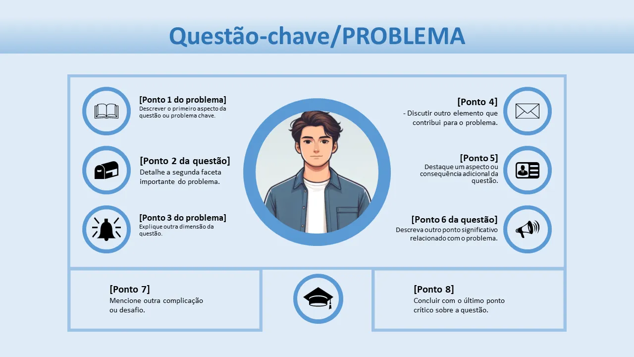 Este modelo de PowerPoint de conferência profissional foi criado para ajudar profissionais de negócios a fazer apresentações claras e impactantes durante conferências, reuniões executivas ou cúpulas estratégicas. Ele é estruturado em torno de descobertas importantes e estruturas de resolução de problemas, tornando-o ideal para comunicar ideias complexas em um formato organizado e visualmente envolvente. O modelo foi criado para públicos que precisam apresentar insights baseados em dados e estratégias acionáveis em ambientes de alto risco.