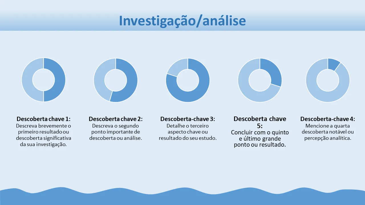 - Layout de slides estratégico para apresentação de resultados e análises de pesquisas