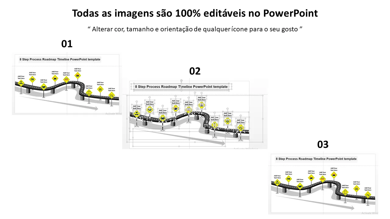 Características de Modelo de PowerPoint de cronograma de roteiro de processo de 8 etapas
