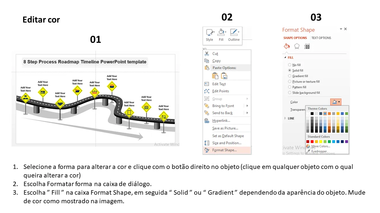 Explicação do modelo de PowerPoint do cronograma do processo de 8 etapas