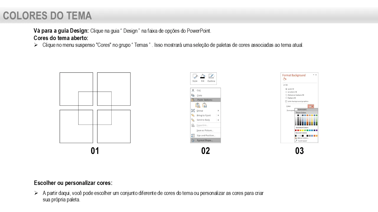 - Elementos visuais e marcadores de conteúdo específicos de cada tópico