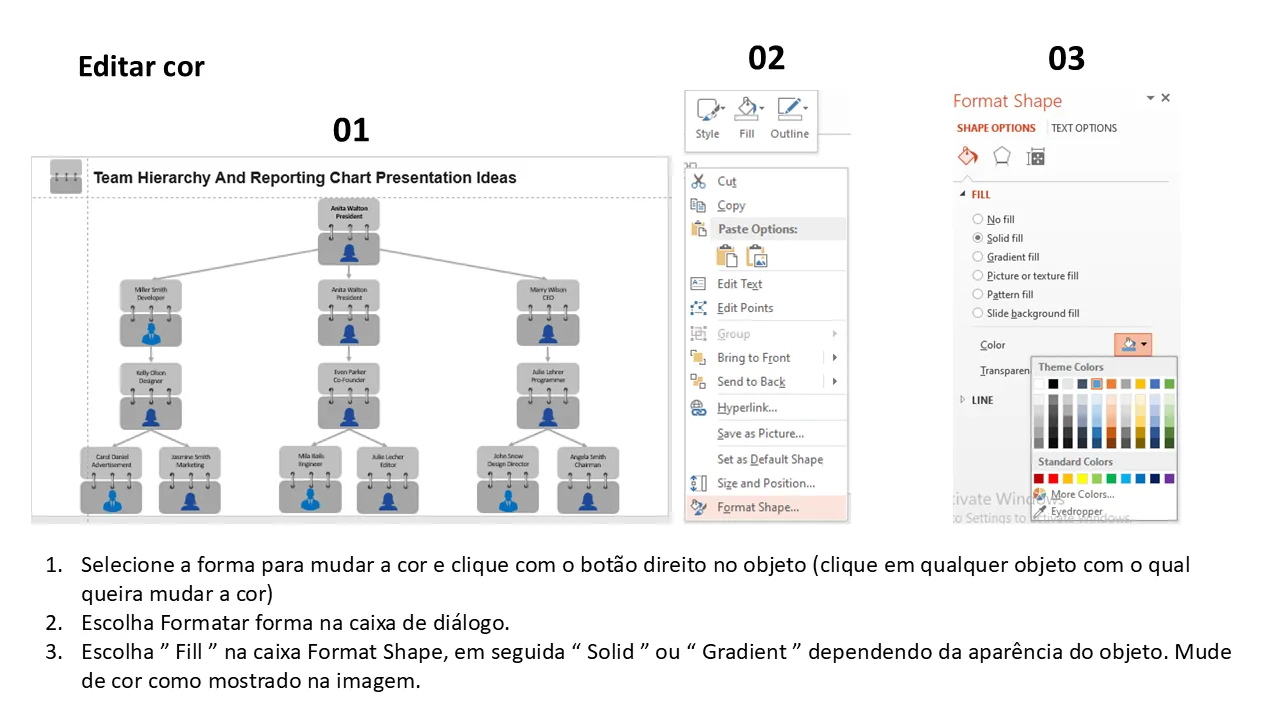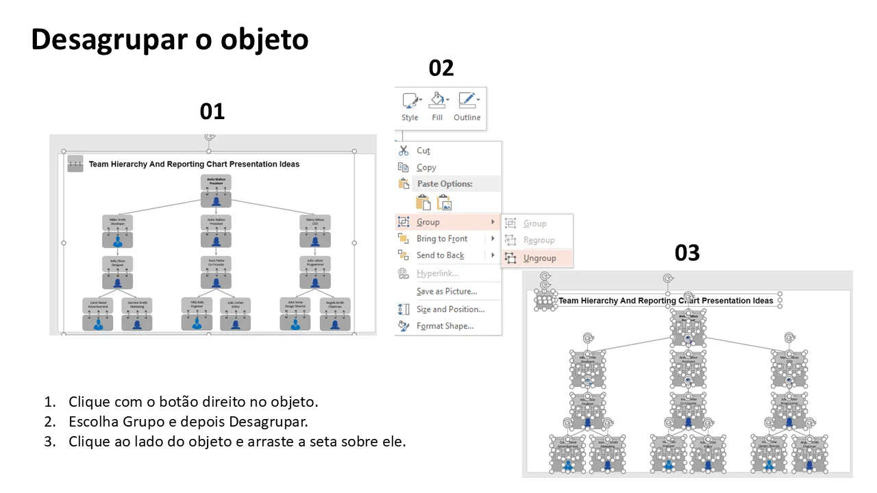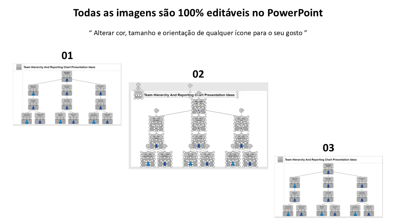 Características de Modelo de PowerPoint de ideias de apresentação de gráfico de hierarquia e relatórios de equipe para apresentações profissionais
