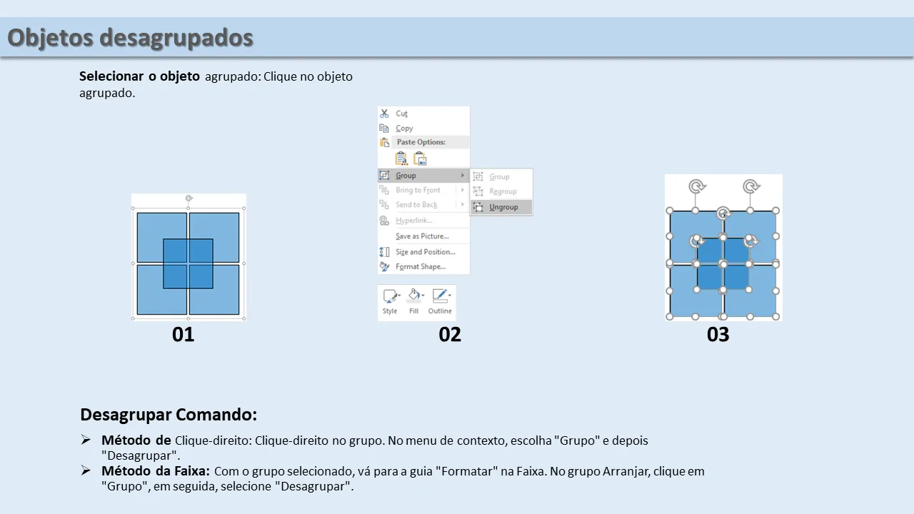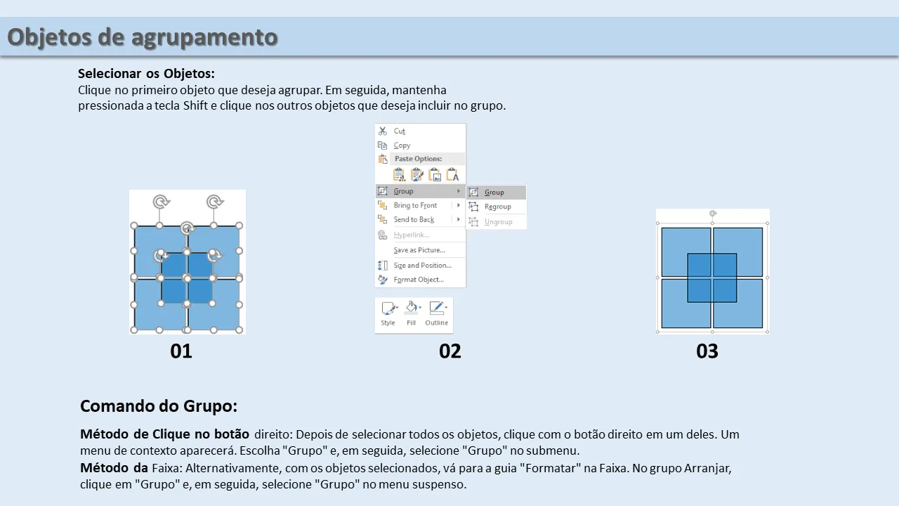 - Inclui guias de instruções para agrupar e organizar elementos de forma eficiente