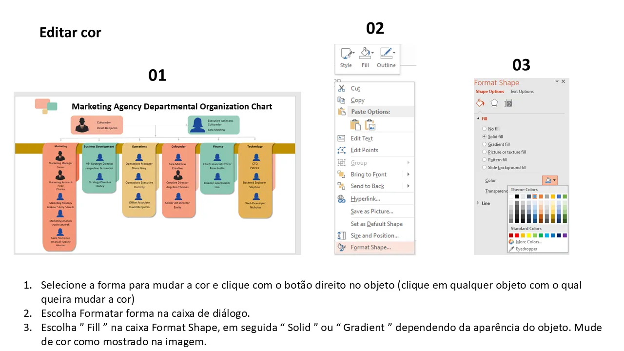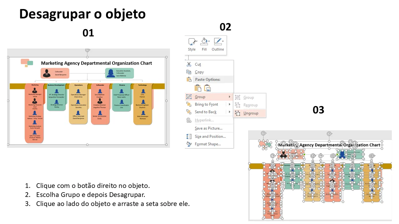 Explicação do organograma departamental da agência de marketing
