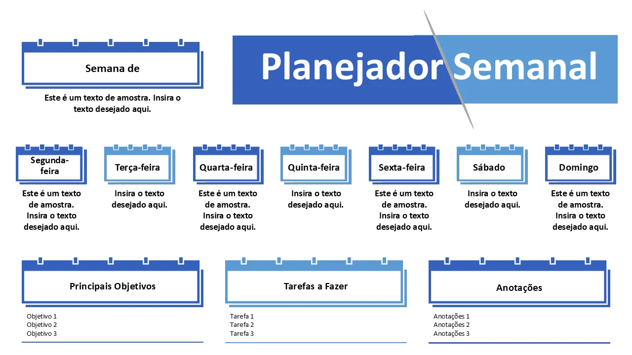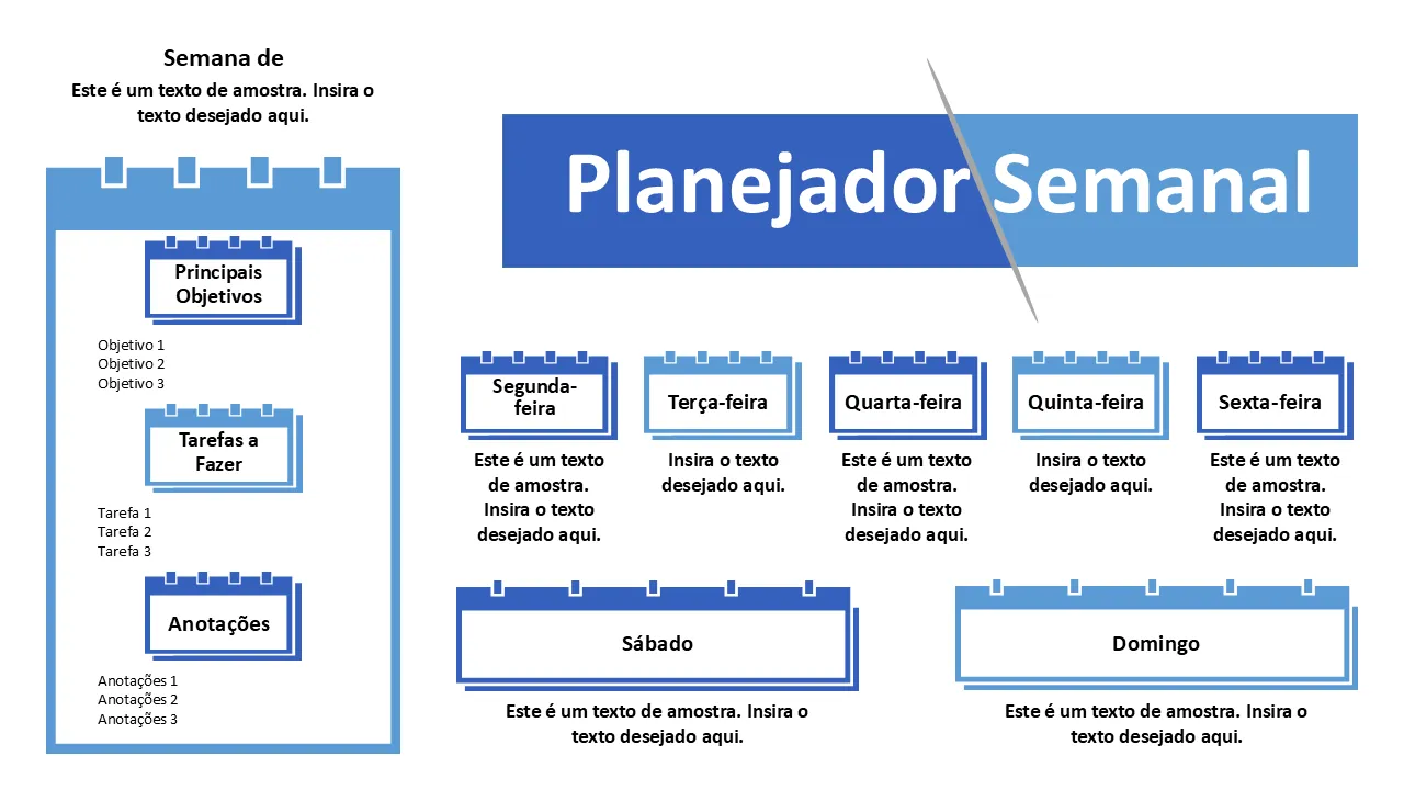 Características de Modelo de PowerPoint de planejador semanal para apresentações de negócios