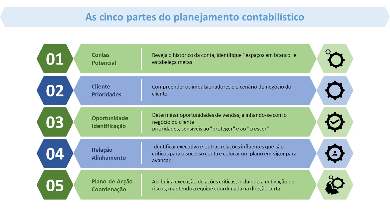 - Estrutura de planejamento de contas estruturada em cinco partes com hierarquia visual