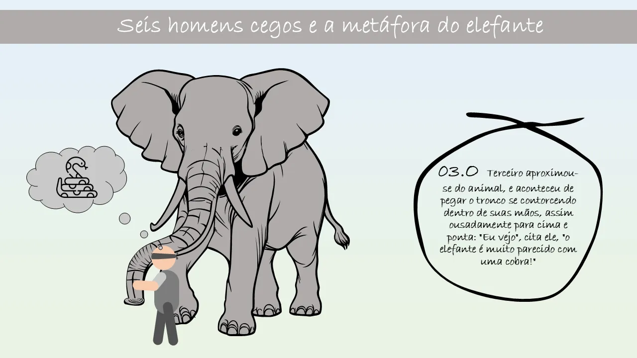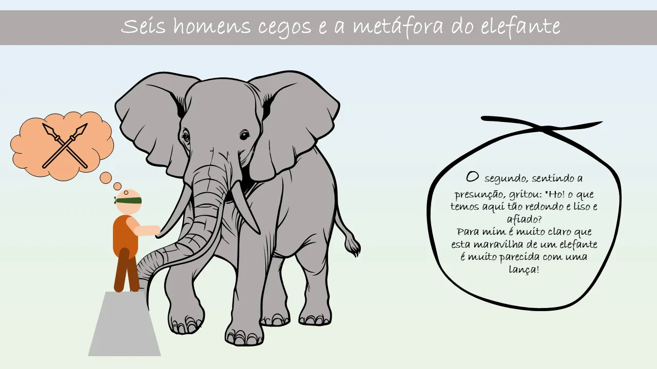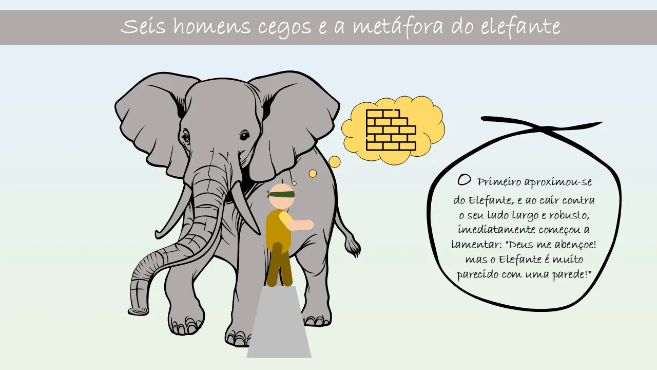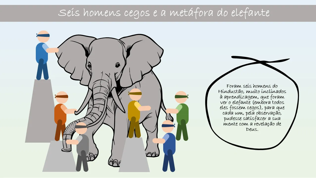 Explicação da metáfora dos seis homens cegos e do elefante