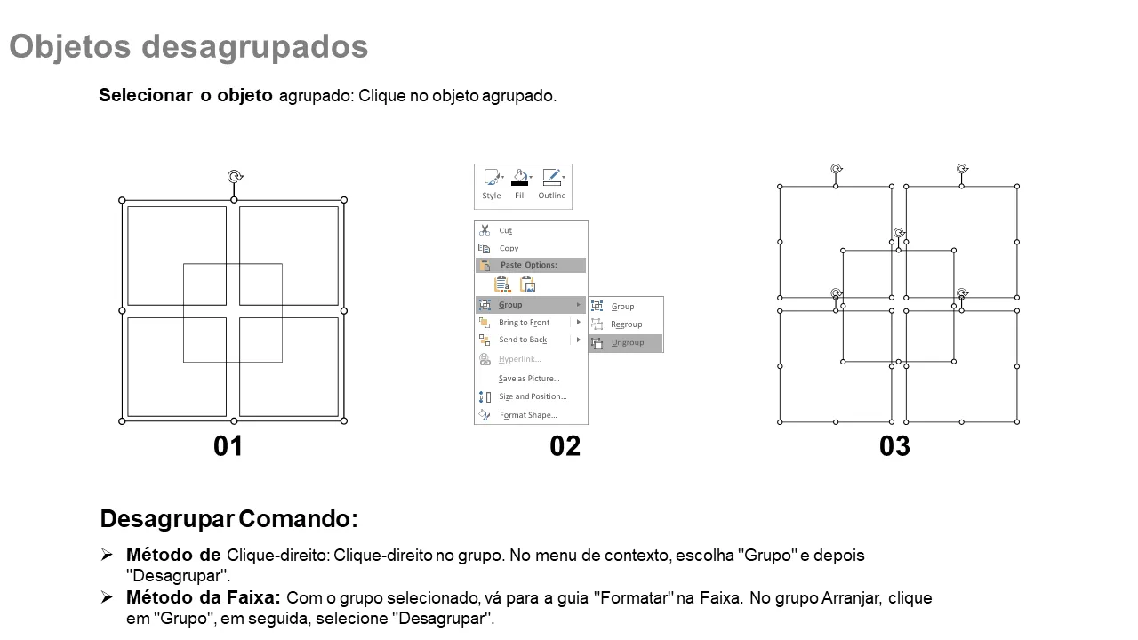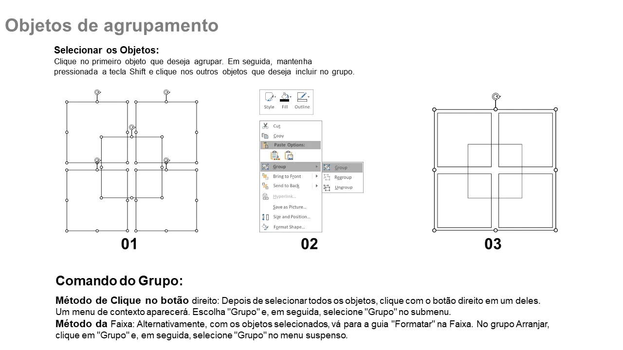 - Instruções para agrupar e desagrupar objetos para manter a integridade do design