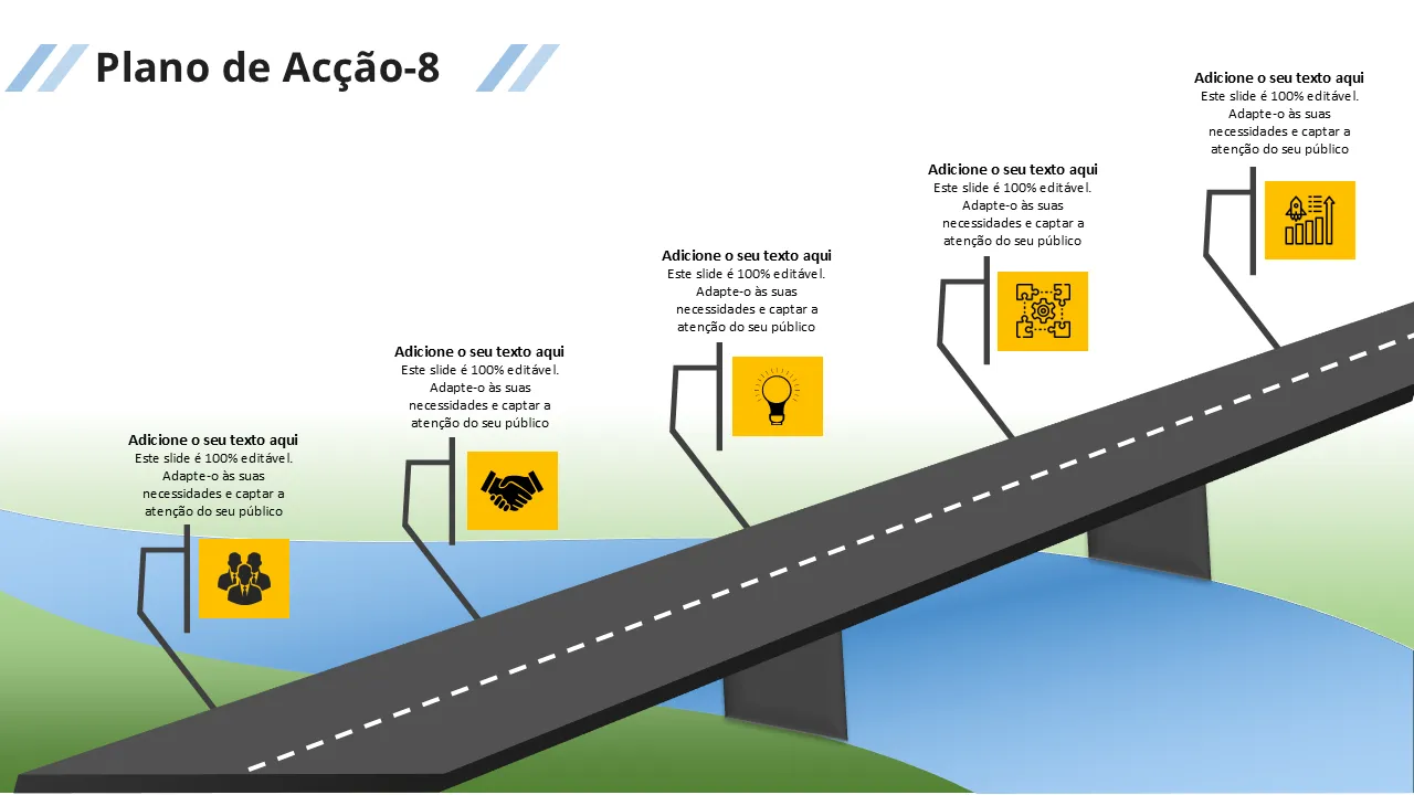 - Linguagem de design consistente em todos os slides para uma narrativa coesa