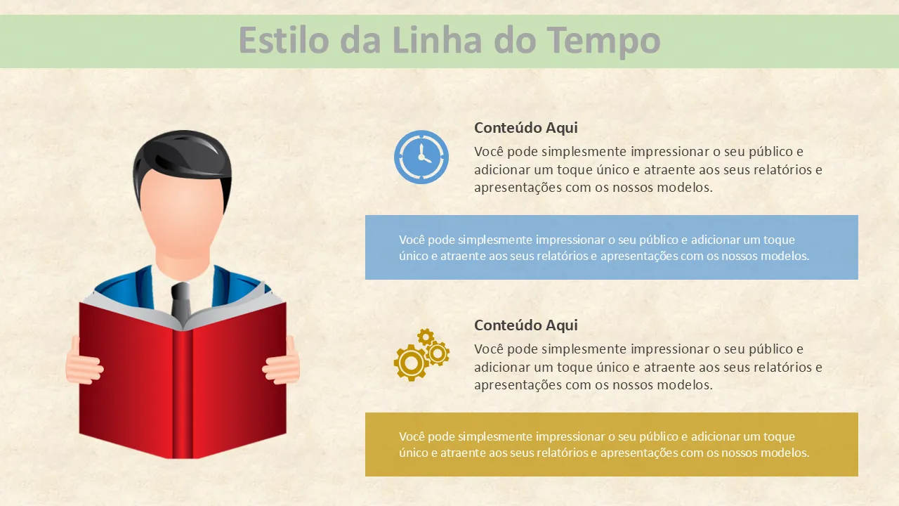 - Elementos visuais e marcadores de conteúdo específicos de cada tópico