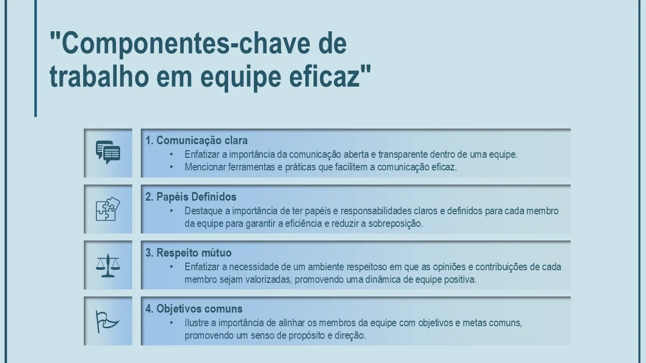 - Linguagem de design consistente em todos os slides para uma narrativa coesa