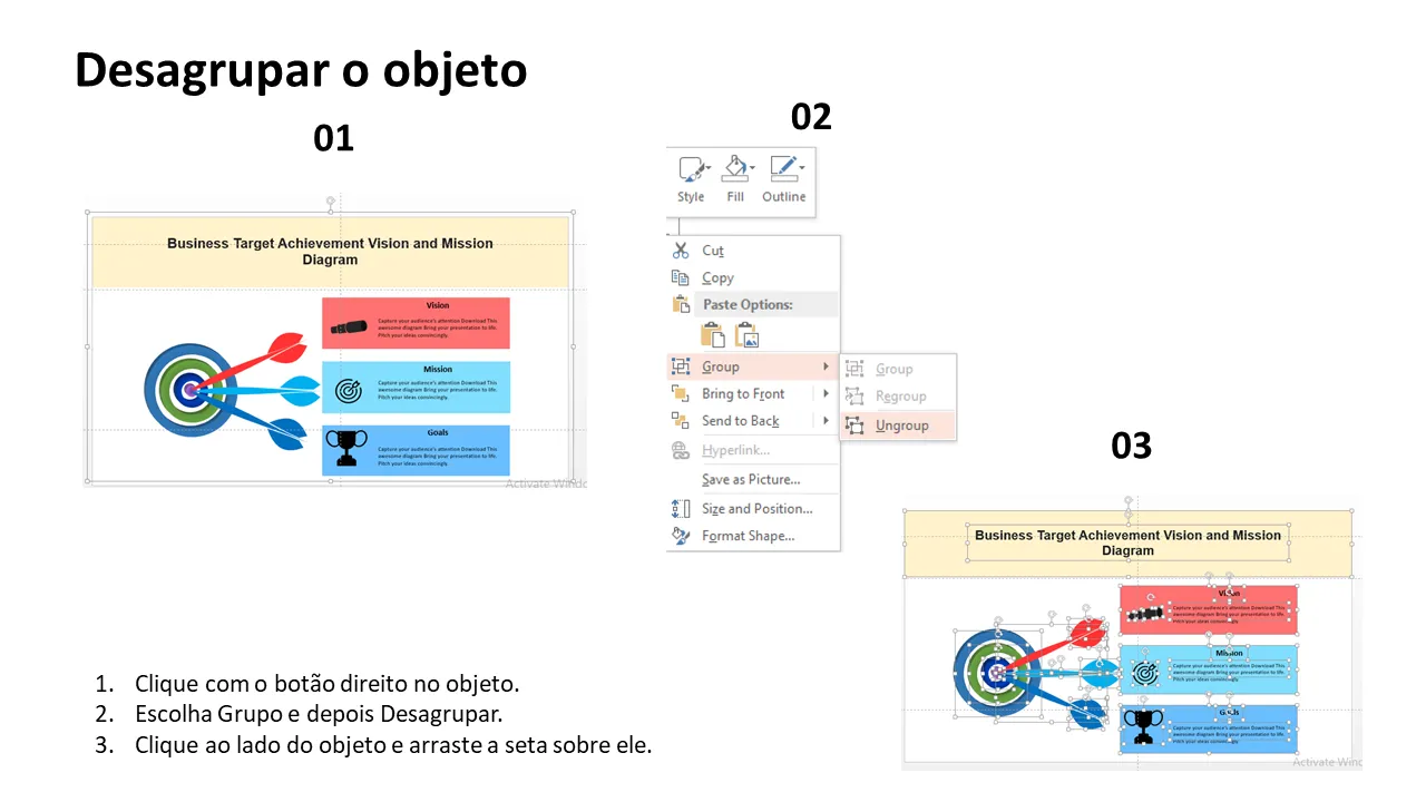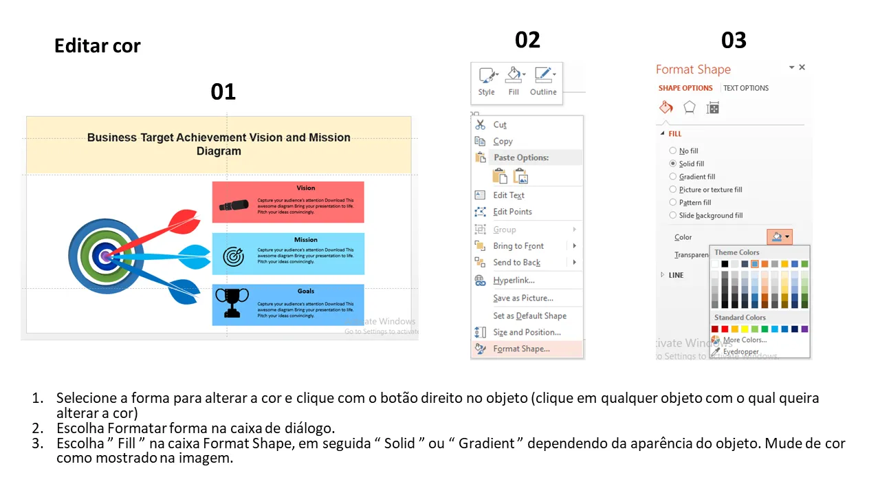 Explicação do modelo de PowerPoint do diagrama de missão de visão empresarial