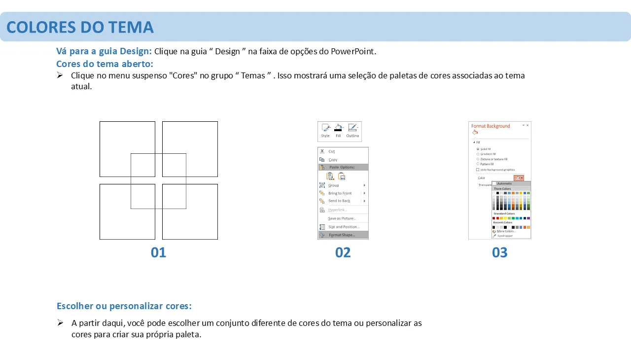 - Elementos visuais e marcadores de conteúdo específicos de cada tópico