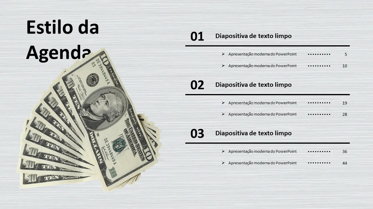 Profissionais de finanças, CFOs e gerentes de projetos usam este modelo para apresentar propostas de planejamento orçamentário a investidores, membros do conselho ou partes interessadas internas. Funciona bem em cenários de finanças corporativas, capital de risco e captação de recursos para startups. Setores como fintech, manufatura e construção se beneficiam de sua abordagem estruturada para modelagem financeira e análise de ROI.