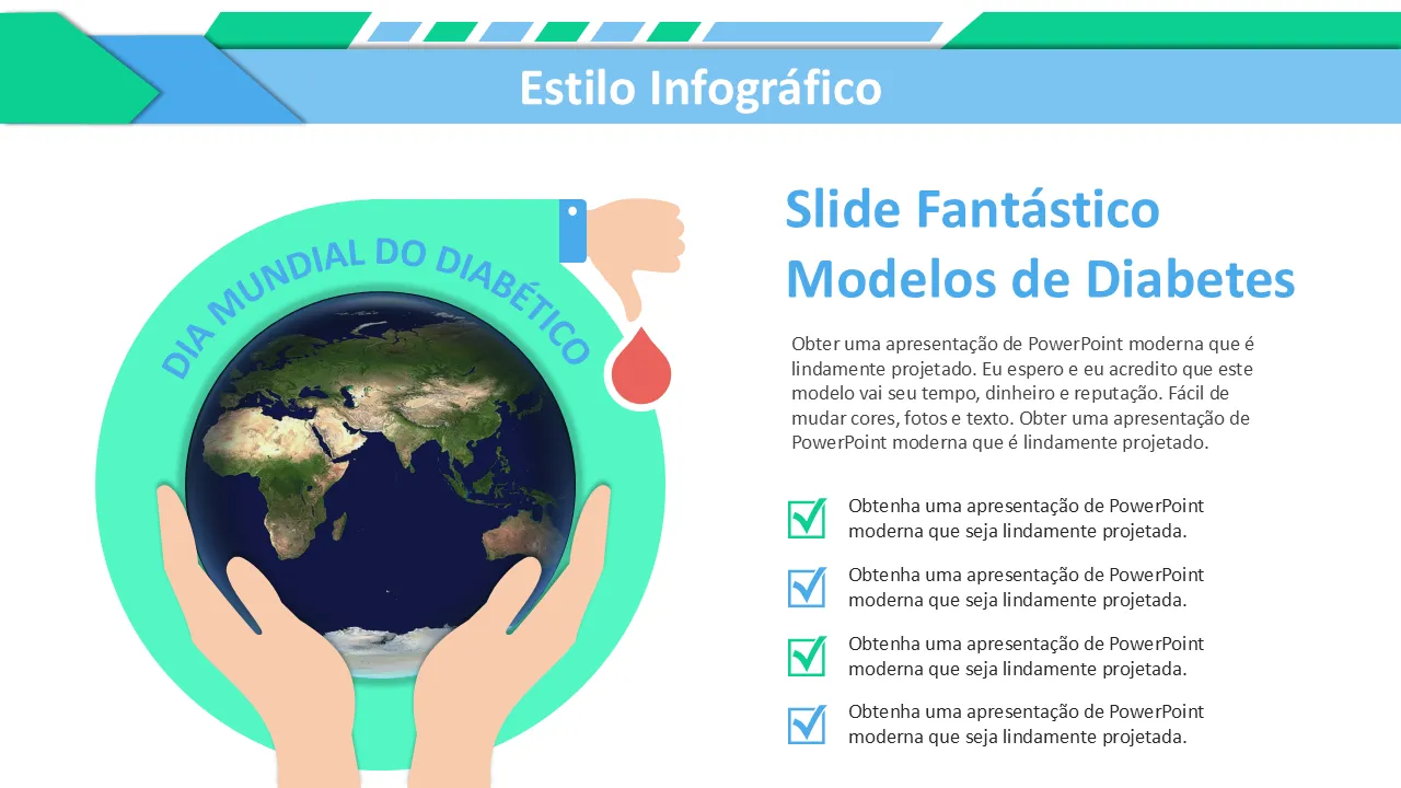 Explicação dos modelos de PowerPoint para vida saudável para diabéticos