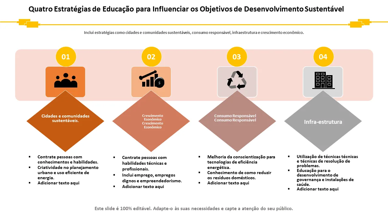 - Linguagem de design consistente em todos os slides para uma narrativa coesa