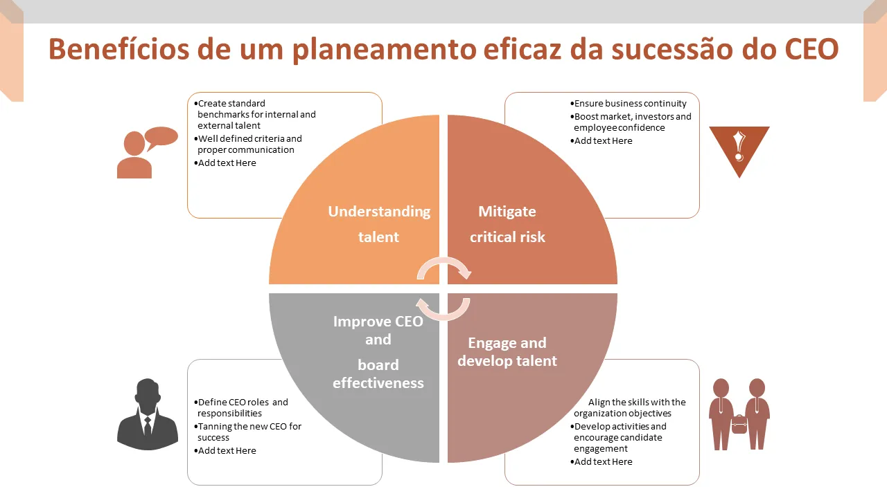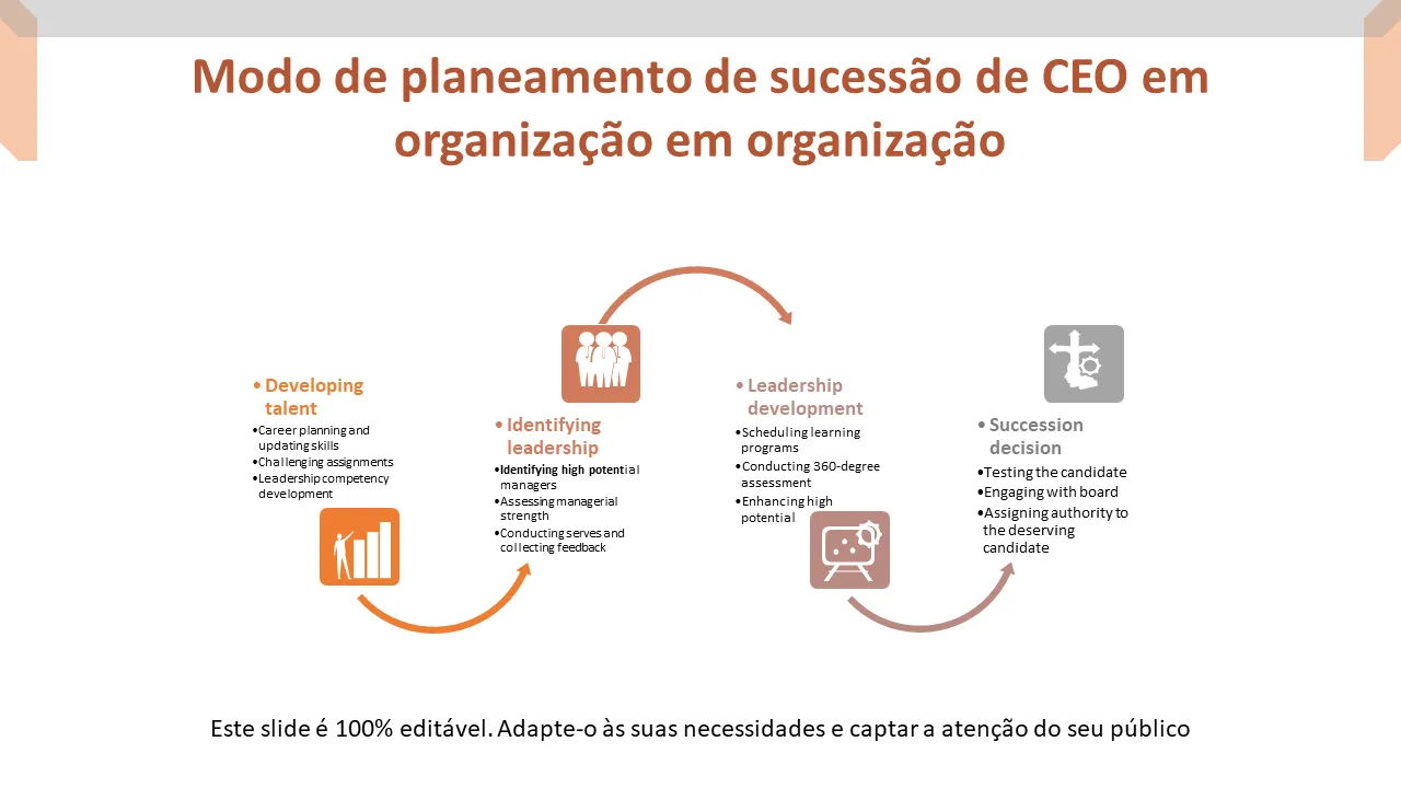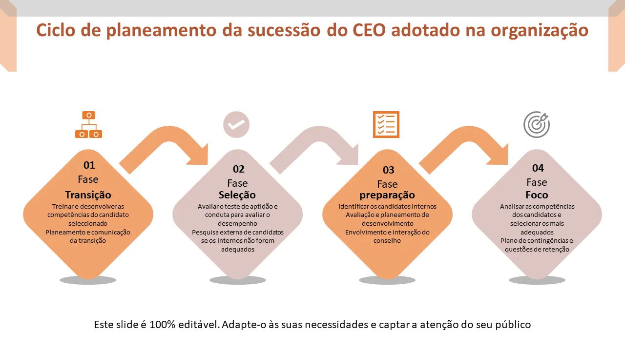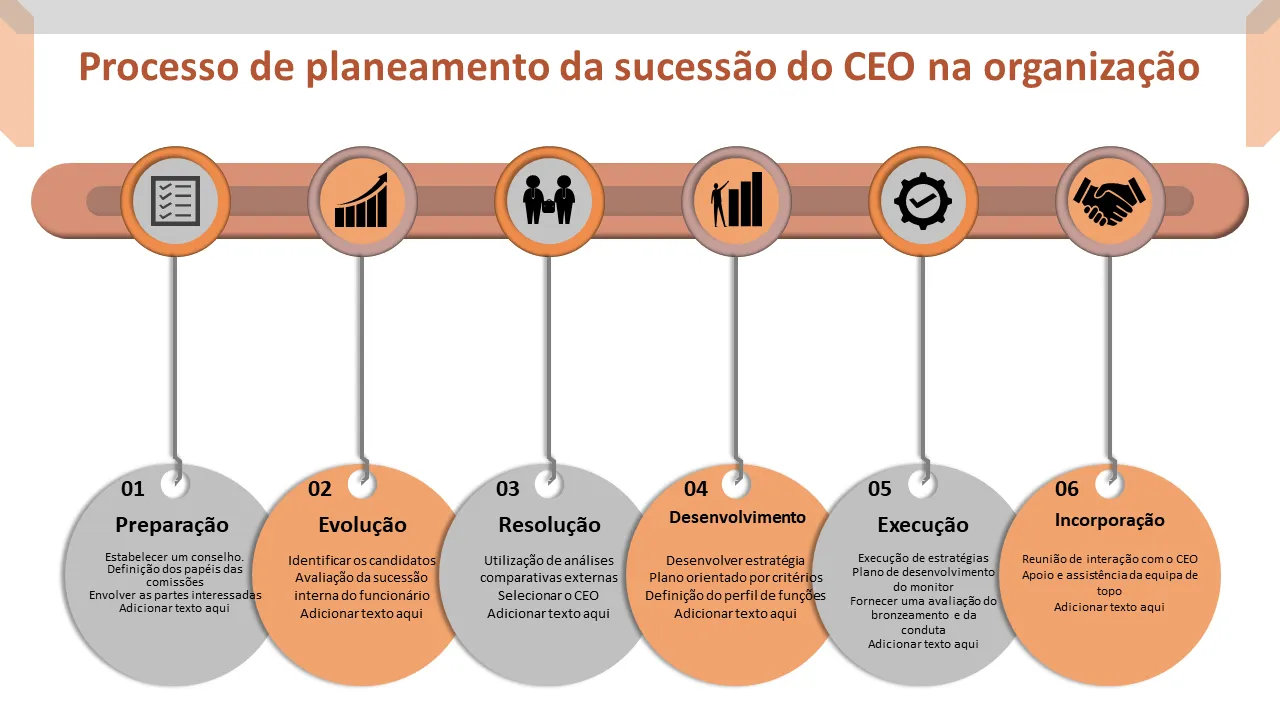 Explicação do modelo de PowerPoint do processo de planejamento de sucessão de CEO