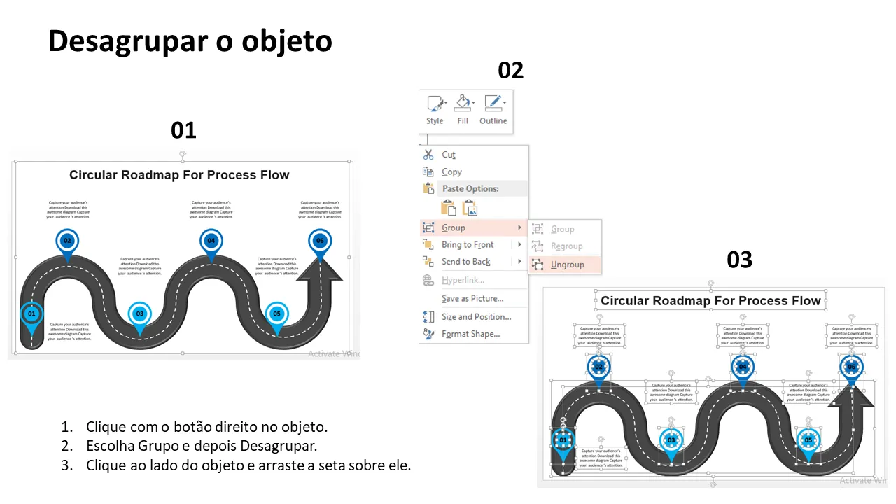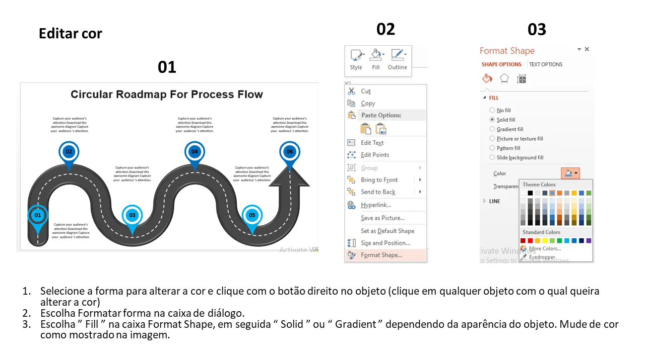 Explicação do modelo de PowerPoint do roteiro de fluxo de processo circular