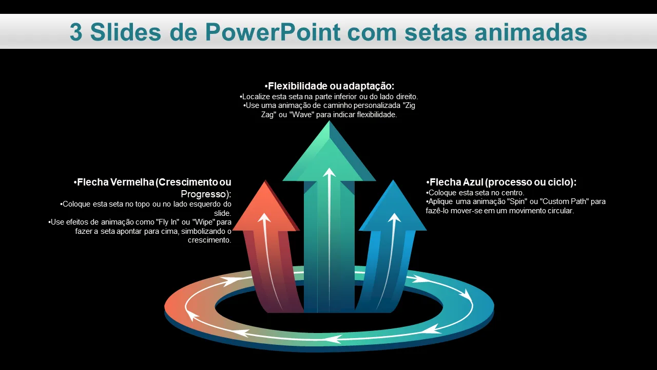 Explicação do modelo de PowerPoint com 3 setas animadas
