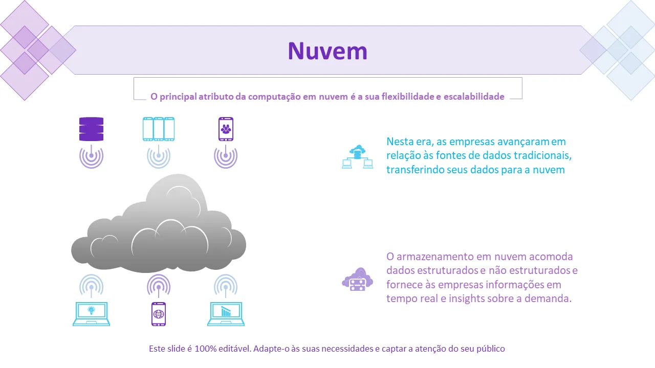 Líderes empresariais, cientistas de dados e equipes de marketing usam este modelo para comunicar descobertas analíticas complexas em setores como tecnologia, finanças e varejo. É ideal para briefings executivos, lançamentos de produtos e roteiros de transformação digital. Consultores e analistas se beneficiam de seu layout estruturado para apresentar KPIs, tendências de adoção de IoT e modelos preditivos. O modelo suporta treinamento interno e apresentações para clientes externos.