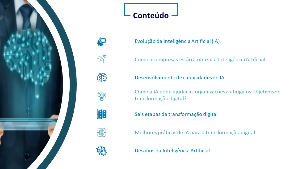 Slides de apresentação em PowerPoint de inteligência artificial para transformação digital
